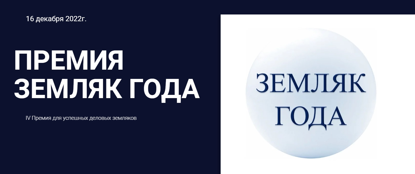 16 декабря 2022г. в Московской торгово-промышленной палате состоится вручение IV Премии «ЗЕМЛЯК ГОДА».