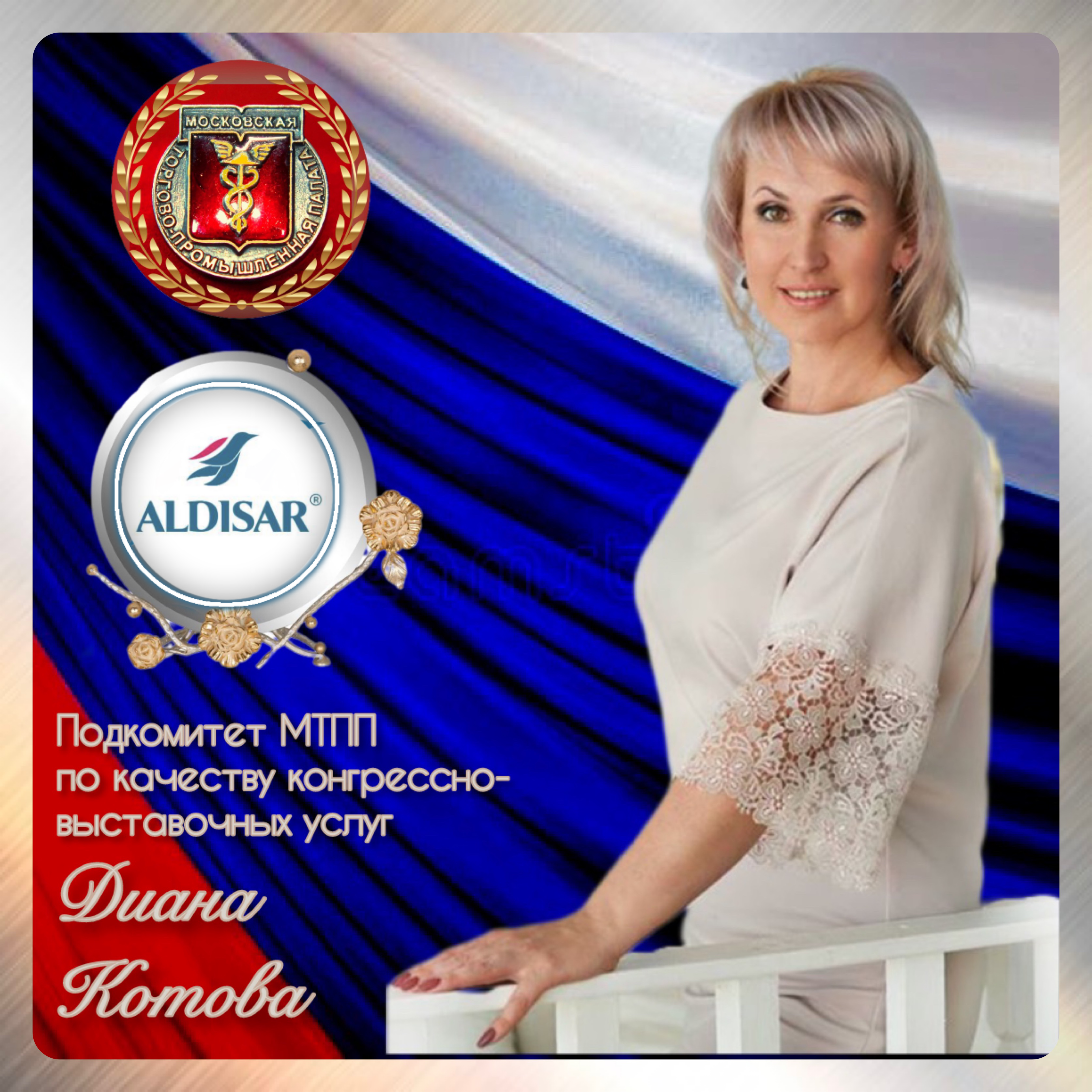 Председатель Подкомитета МТПП по качеству конгрессно-выставочных услуг - Котова Диана Михайловна - генеральный директор ООО «АЛДИСАР», член Некоммерческого партнёрства «Гильдия Маркетологов», Сертифицированный эксперт по маркетинговым коммуникациям, кавалер-дама Ордена за заслуги в маркетинге «За вклад в развитие маркетинговых коммуникаций и выставочной деятельности», член Комиссии Российского союза промышленников и предпринимателей по выставочной и конгрессной деятельности, эксперт Всероссийской организации качества (Свидетельство ВОК № 770178).