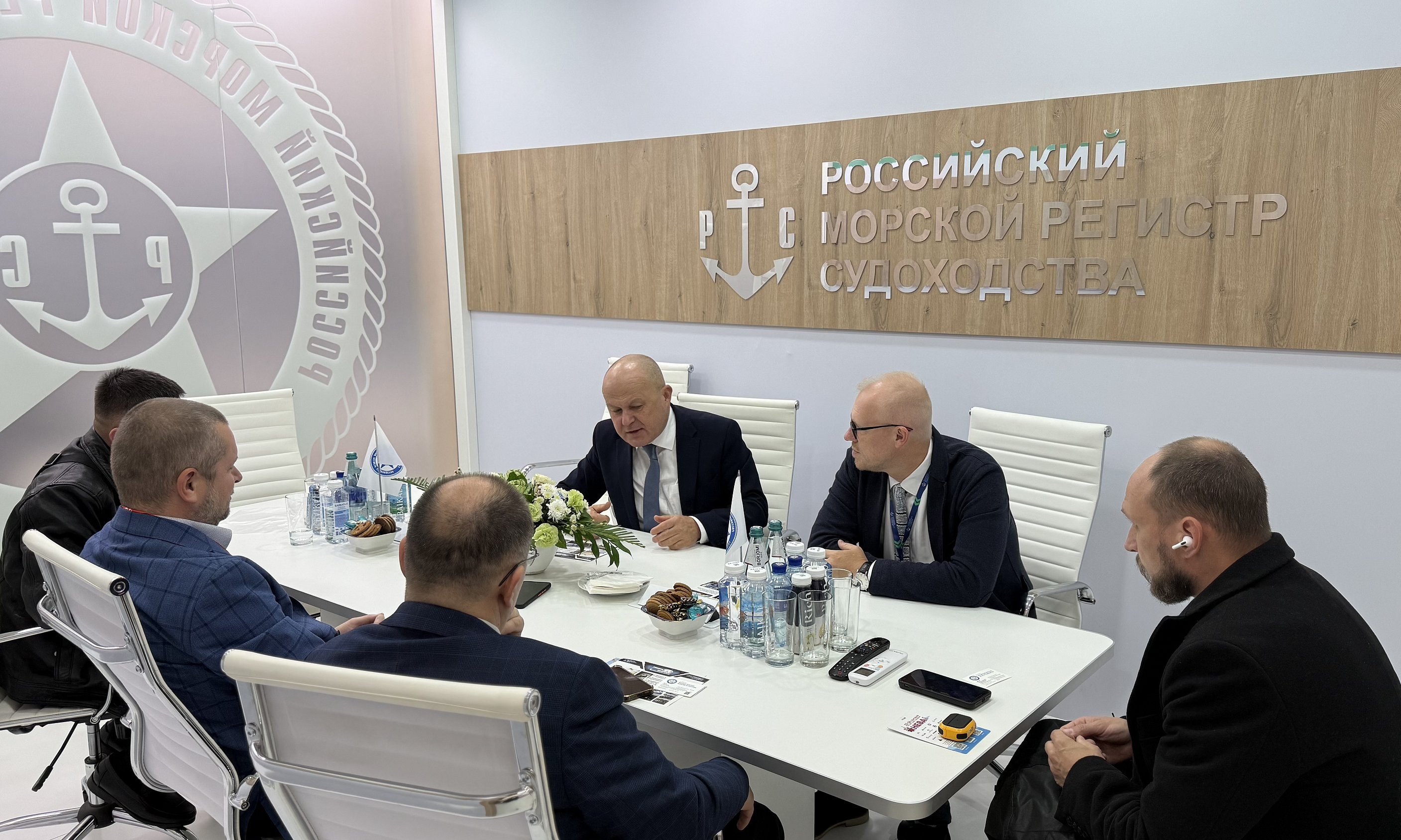 В рамках выставки состоялась серия рабочих встреч, направленных на взаимодействие с контролирующими органами и коммерческими предприятиями. Первая встреча состоялась с представителями руководства Классификационного общества «Российский морской регистр судоходства». Встречу провел Петр Ванюков, Директор ООО «Российский морской регистр судоходства (Тяньцзинь)». Он рассказал о возможности взаимодействия с регистром в сфере судостроения и судоремонта на территории Китайской Народной Республики и пригласил участников на Международную выставку «Marintec China 2025».