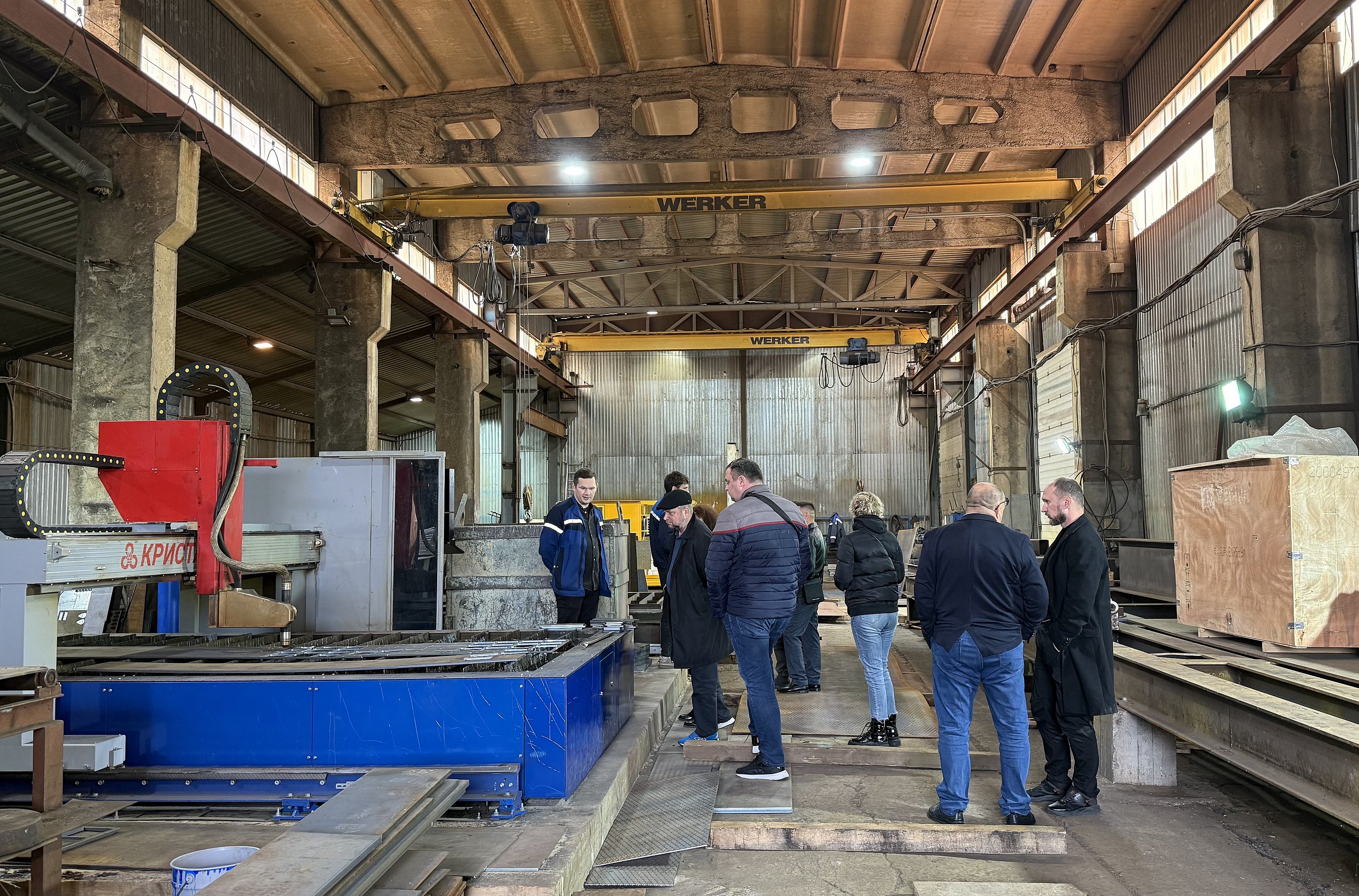 Выезд в Ленинградскую область продолжился посещением предприятия «Всеволожский Крановый Завод WERKER». Всеволожский Крановый Завод – один из ведущих производителей грузоподъемного оборудования в России. Мощный производственный, инженерно-технический и научно-технологический альянс компании оказывает полный спектр услуг в области проектирования, изготовления, монтажа, ремонта, сервисного и технического обслуживания грузоподъемного оборудования. Экскурсия по предприятию продолжилась рабочей встречей с Олегом Ершовым, Генеральным директором Всеволожский Крановый Завод WERKER. В ходе встречи участники обсудили вопросы кооперации и возможности поставок на предприятие.