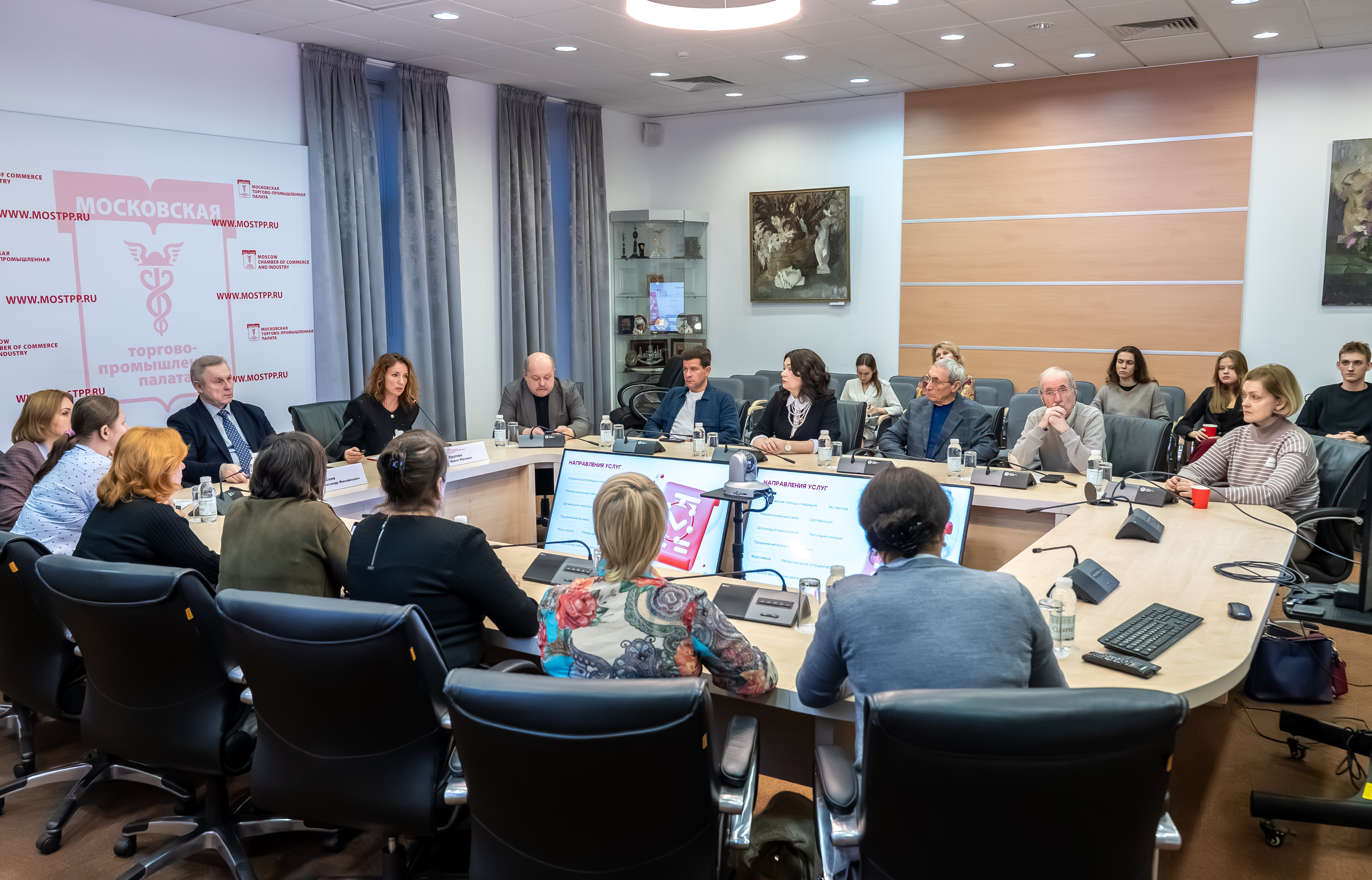 Начальник Управления реализации программ и проектов МТПП Ирина Крутова познакомила присутствующих с основными направлениями деятельности Московской торгово-промышленной палаты, подробно рассказав о возможностях и услугах, которые организация предоставляет бизнес-сообществу столицы. Спикер отметила, что для того, чтобы обратиться за консультацией по практически любым вопросам, связанным с ведением бизнеса, не обязательно членство в МТПП, но принадлежность к экосистеме торгово-промышленных палат даёт серьезные преференции и возможность обмена опытом с многочисленными коллегами.