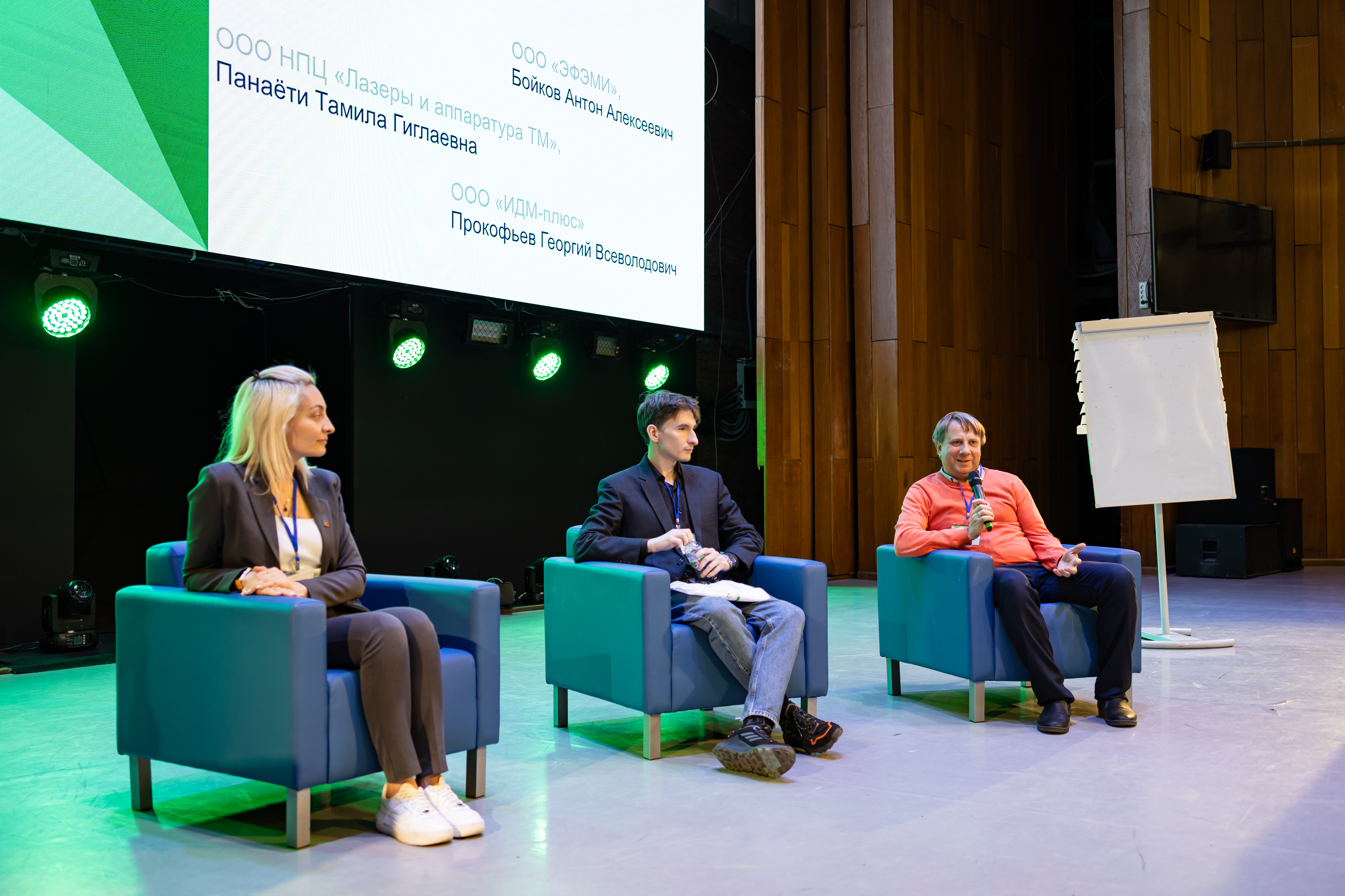 В панельной дискуссии «Зеленоградский предприниматель – путь к достижению цели» приняли участие бизнесмены, представившие свои истории успеха. Заместитель генерального директора по корпоративным коммуникациям и маркетингу ООО НПЦ «Лазеры и аппаратура ТМ» Тамила Панаёти выступила на тему «Производство и разработки: что все думают, я делаю на заводе vs что я там делаю на самом деле». Она познакомила слушателей с историей создания и современной деятельностью завода, описав особенности работы в заводской команде. Спикер подробно рассказала о процессах создания и сферах применения выпускаемых на заводе станков, объяснила, как предприятие привлекает к сотрудничеству школьников, абитуриентов и студентов различных учебных заведений.