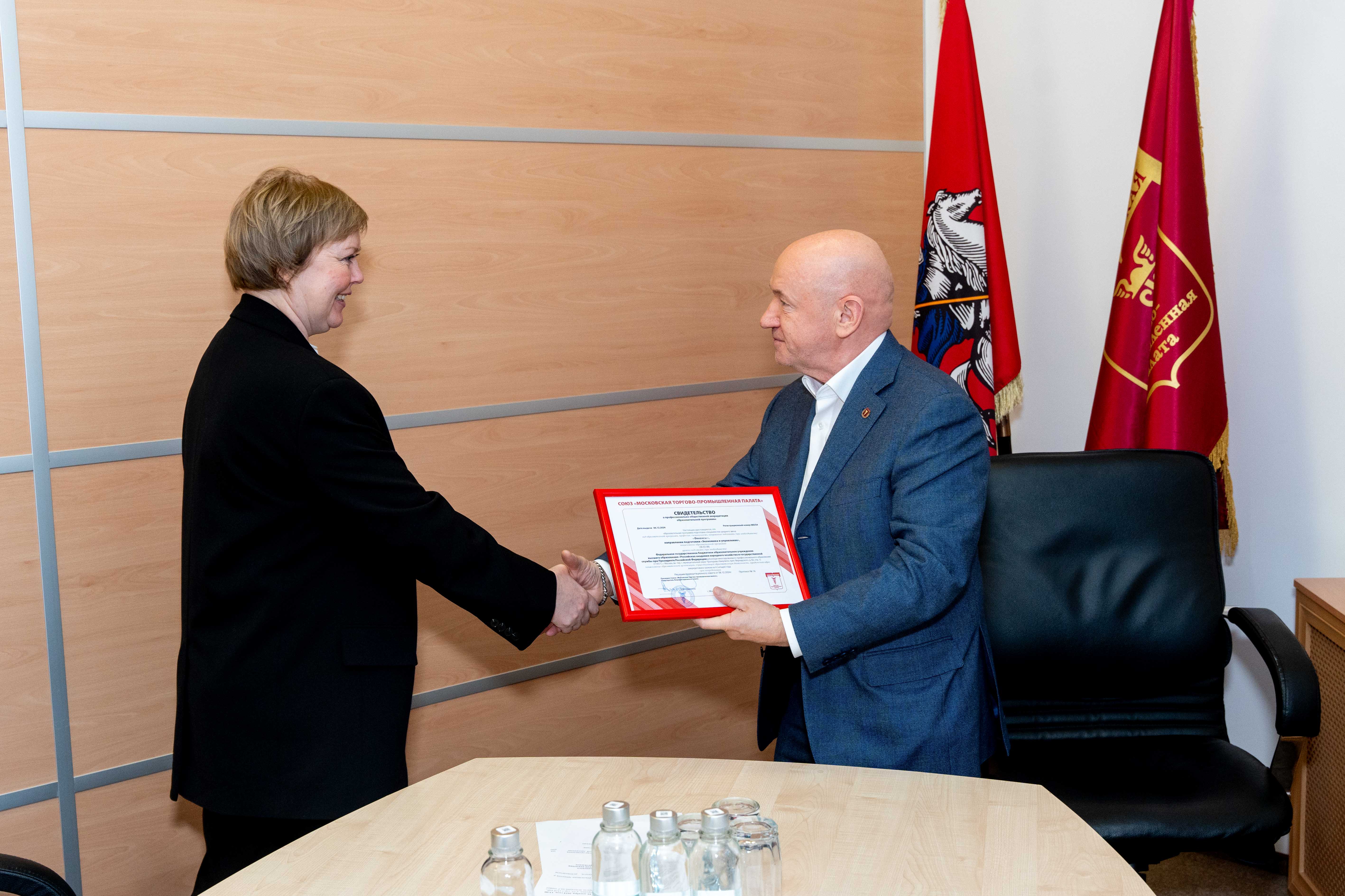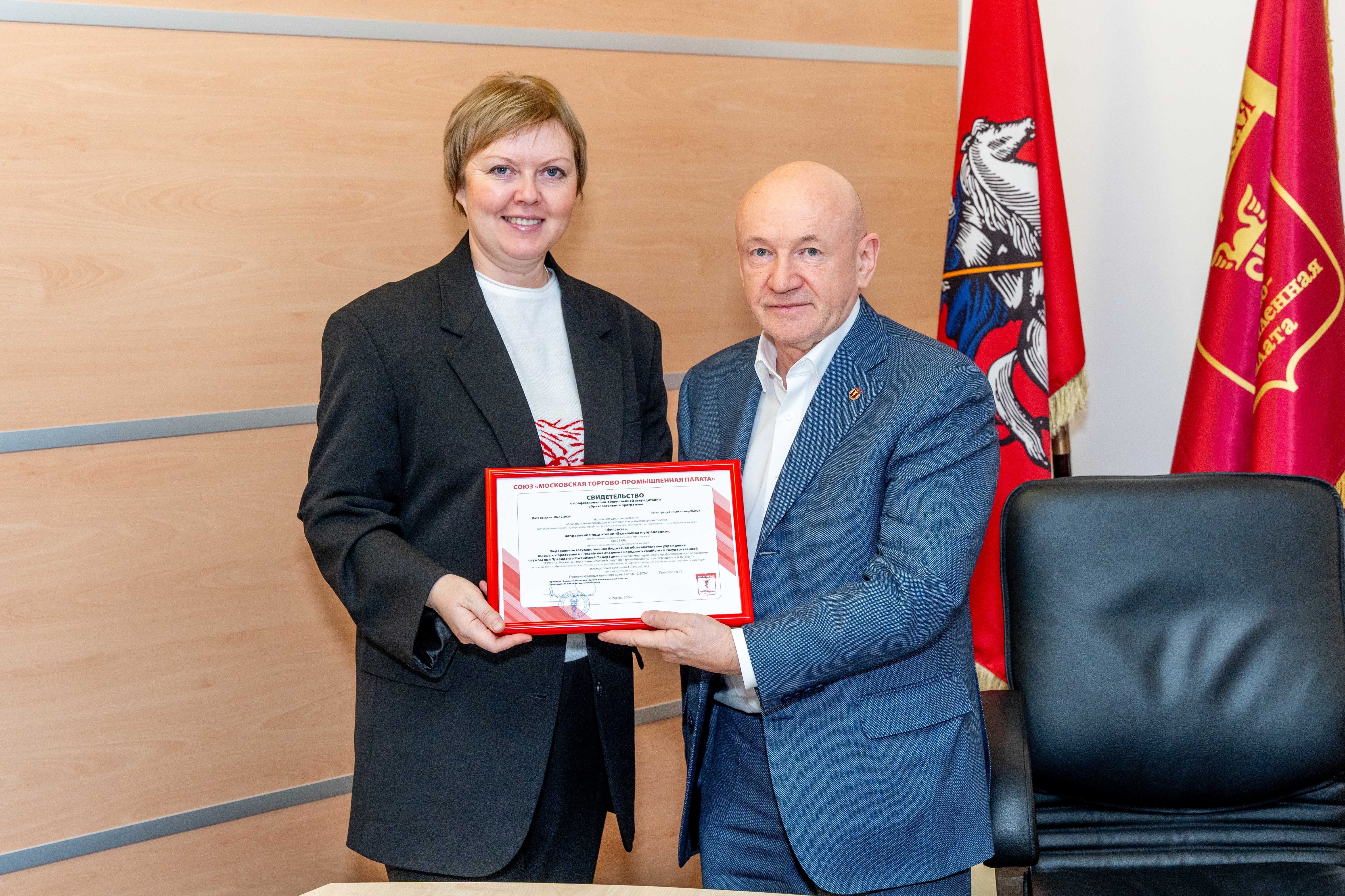 Президент МТПП вручил Свидетельство о профессионально-общественной аккредитации директору колледжа при РАНХиГС.