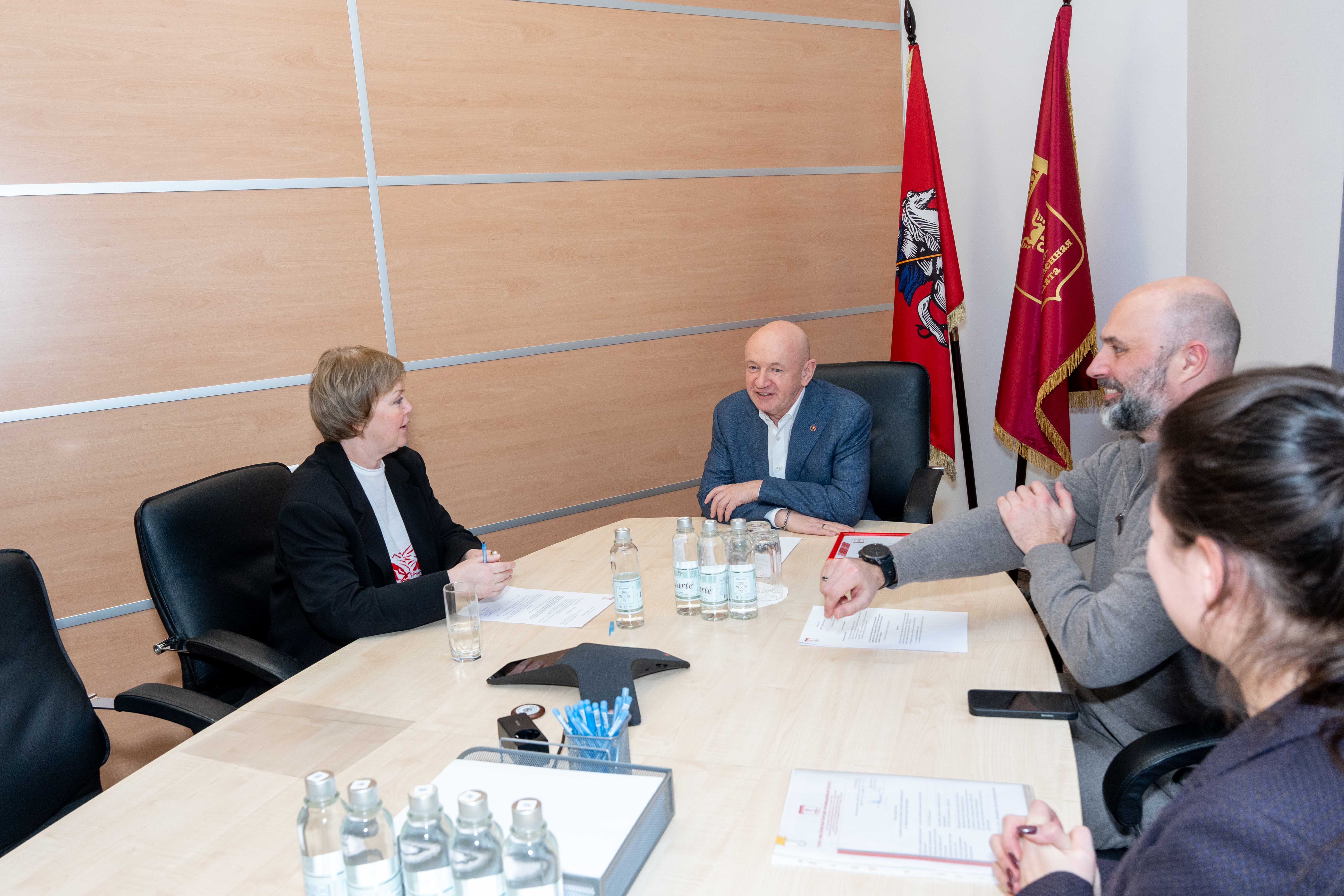 Со своей стороны Владимир Платонов рассказал собеседнице о проекте «Начни свой бизнес с Москвой», который МТПП второй год подряд будет реализовывать при поддержке Комитета общественных связей и молодёжной политики Москвы в рамках гранта Мэра Москвы. Проект направлен на получение студентами навыков предпринимательства. Если в нынешнем году в проект привлекались только иностранные студенты, то в следующем году он будет распространён и на российских учащихся. По словам главы МТПП, стоит подумать о том, как вовлечь в проект и студентов средне-профессиональных учреждений.