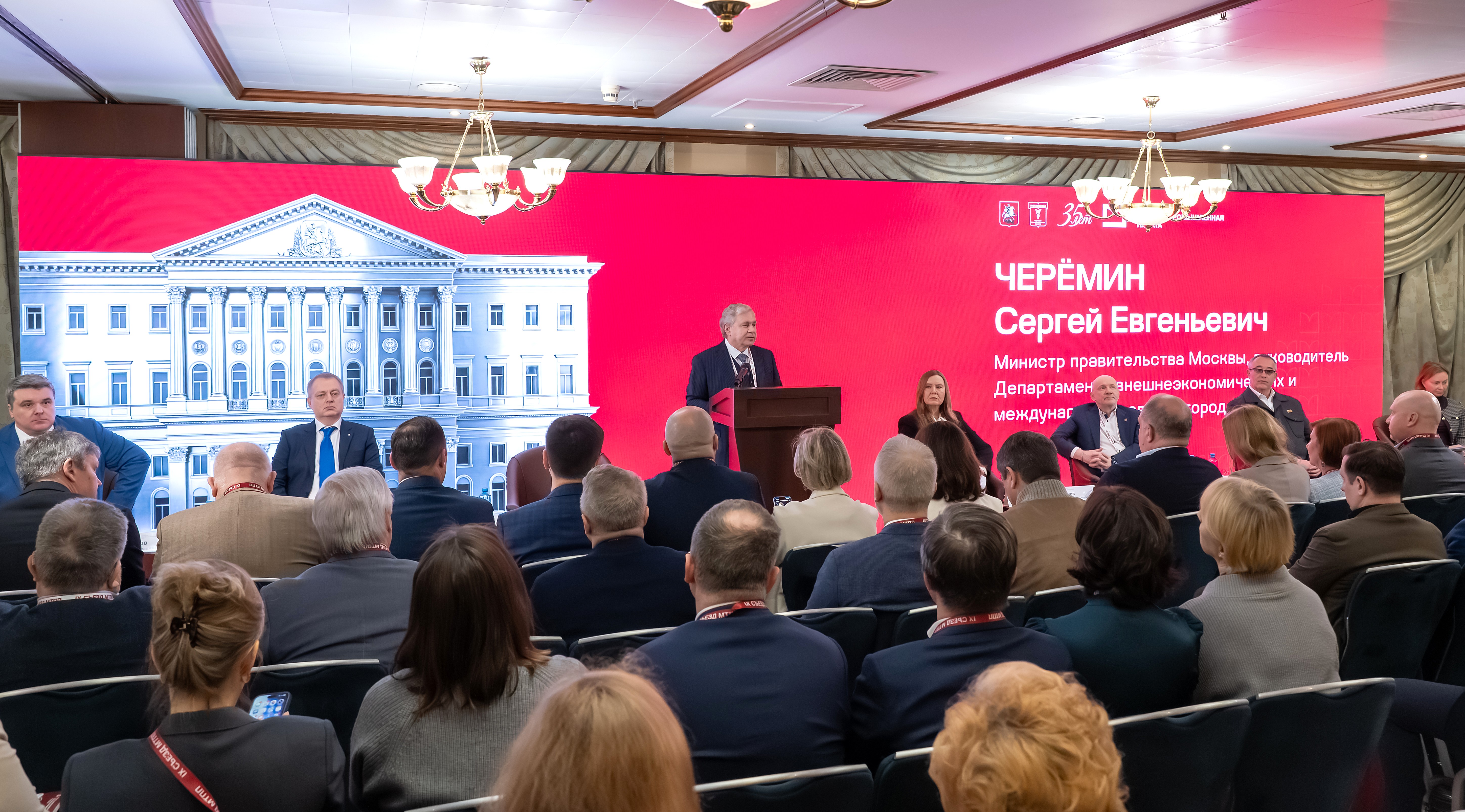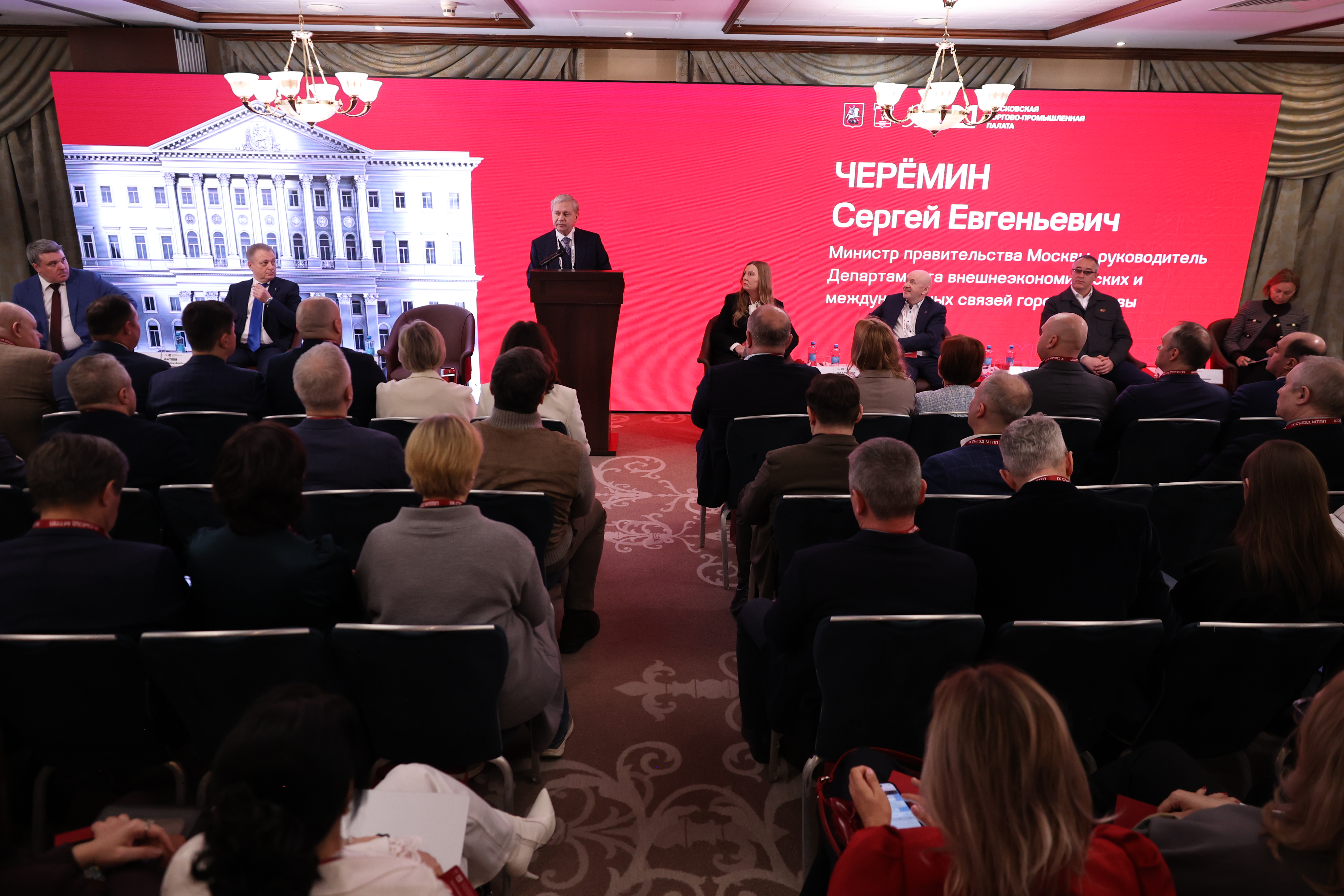 Сергей Черёмин подчеркнул вклад МТПП в развитие международного сотрудничества и продвижение московских компаний на внешние рынки. «Хочу поблагодарить Московскую торгово‑промышленную палату за её активность. Уже более тысячи московских предприятий участвуют в наших конгрессах, форумах, в наших бизнес‑миссиях за рубежом. Несмотря на сложные логистические проблемы, тем не менее наши бизнес‑делегации активно участвуют, заключают новые контракты, показывают то, что в Москве развиваются инновационные технологии», – сказал он.