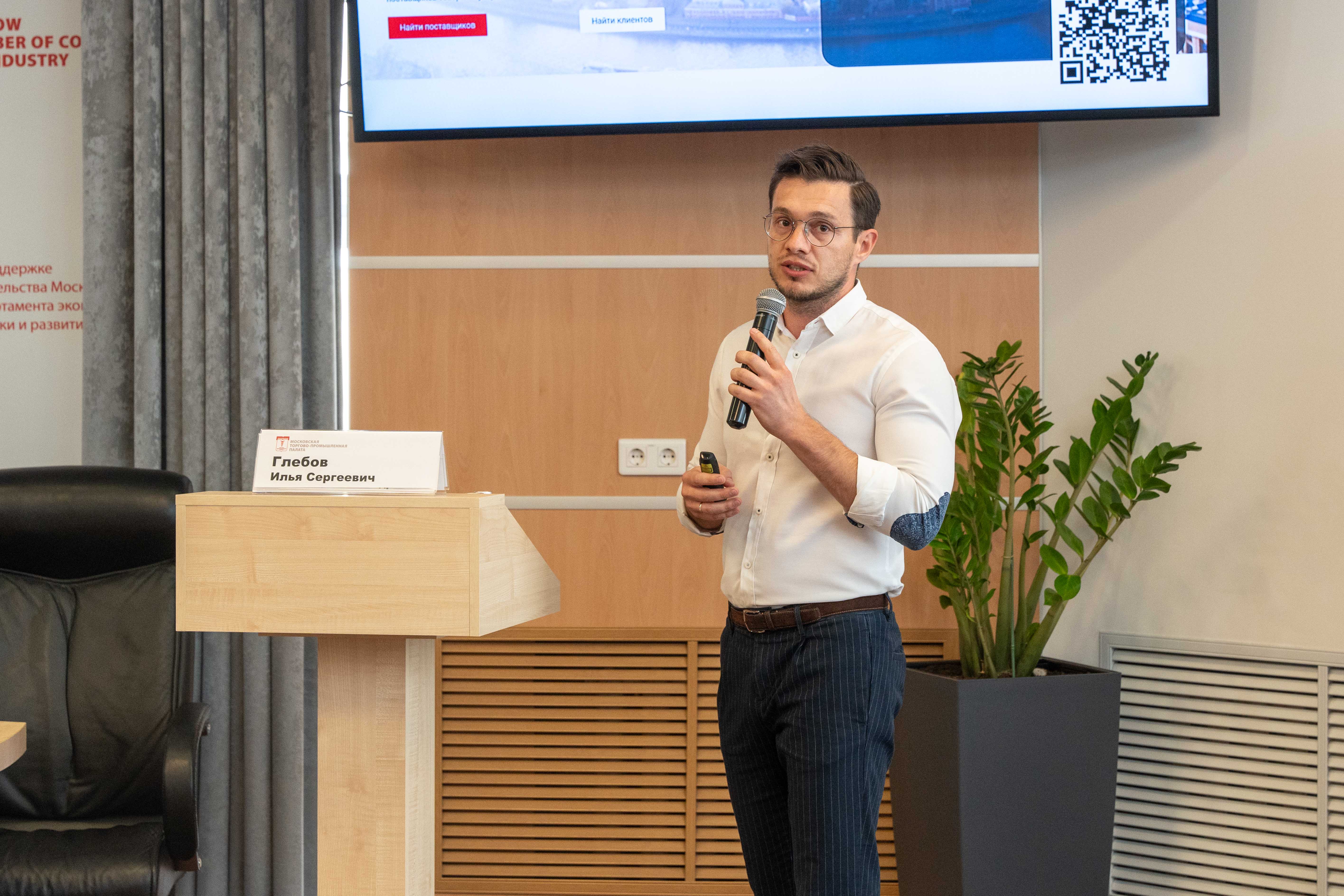 Директор Департамента цифрового развития, инноваций и инвестиций МТПП Илья Глебов рассказал о проектах, которые реализует подразделение. «Сразу после вступления в МТПП мы рекомендуем вам найти общественную структуру, которая близка вам по профилю вашей деятельности и вступить в неё, а также зарегистрироваться на нашей цифровой платформе «Бизнес-маркет», - заявил Илья Глебов. Площадка насчитывает порядка 120 тысяч уникальных посетителей в год, на ней размещено более 5,5 тысяч деловых предложений от 3,5 тысяч компаний. Помимо этого, спикер рассказал о разделе сайта МТПП «Мнение эксперта», где публикуются комментарии от участников Экспертного совета по инновационному развитию, в который входит уже порядка 170 участников из различных отраслей экономики. Еще одно направление деятельности Департамента – проведение инвестиционных сессий, к участию в которых привлекаются как частные инвесторы, так и аккредитованные инвестиционные площадки. «Если вы заинтересованы в масштабировании вашего бизнеса – обращайтесь к нам, и мы поможем вам «упаковать» ваш запрос», - подчеркнул спикер.