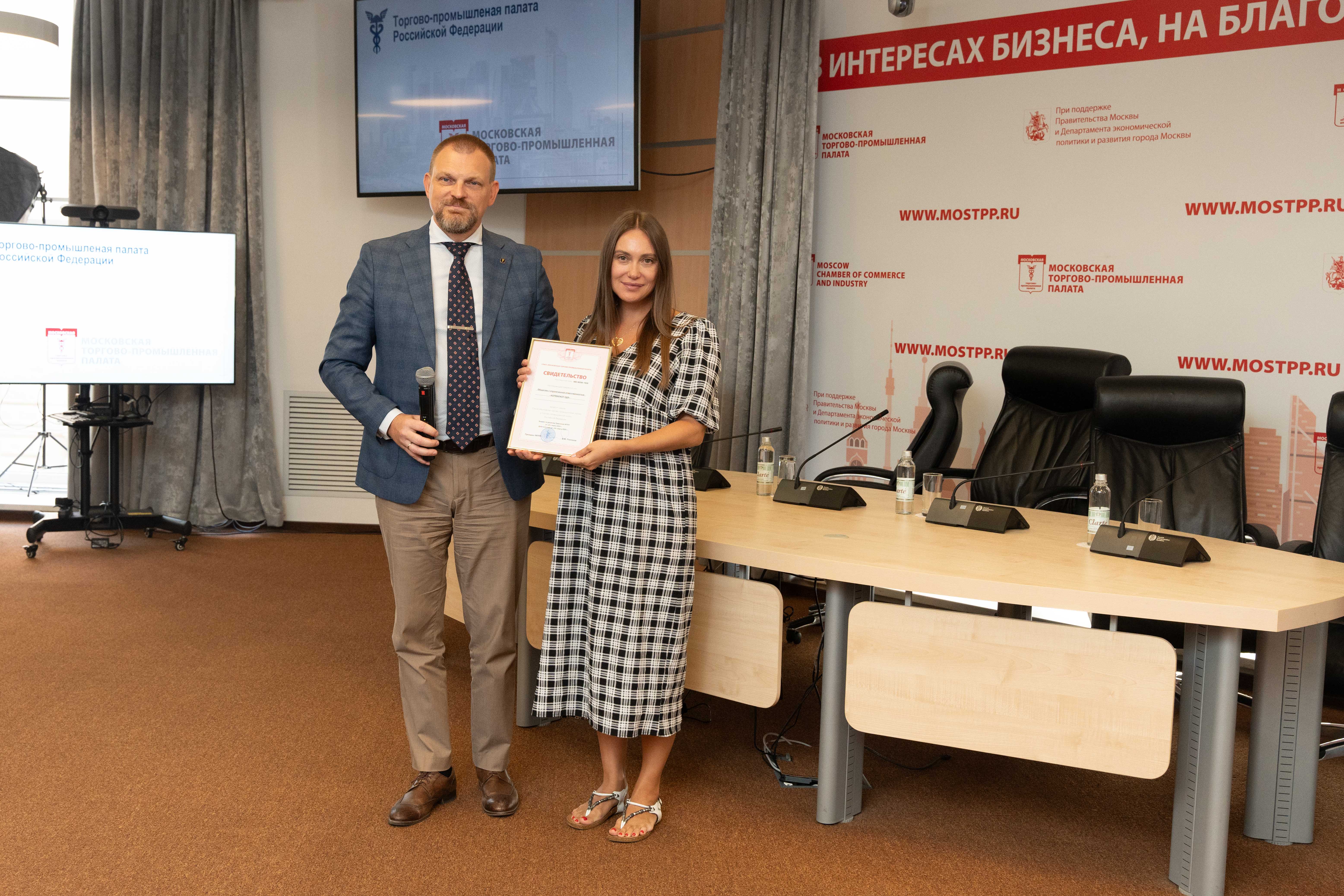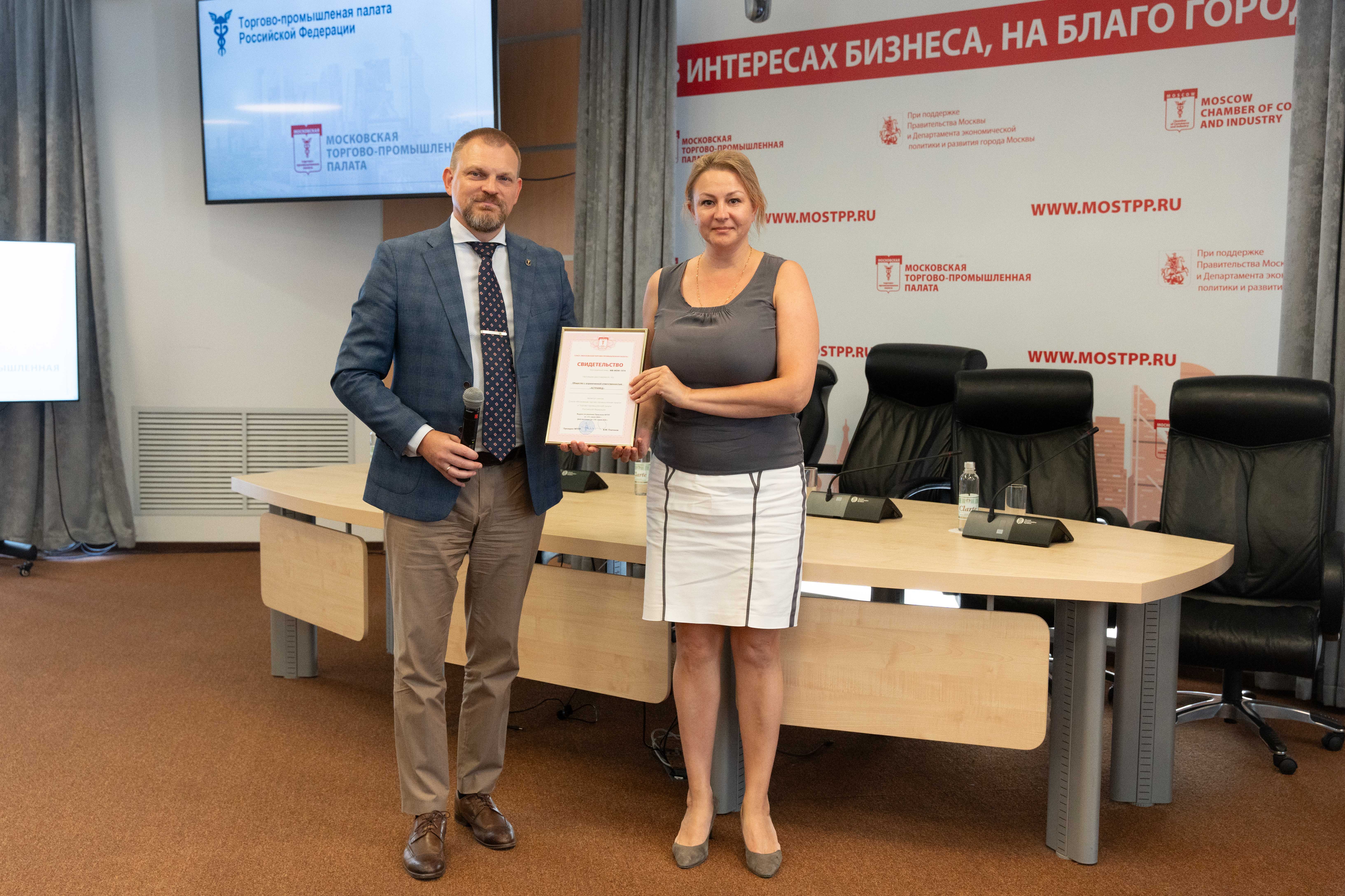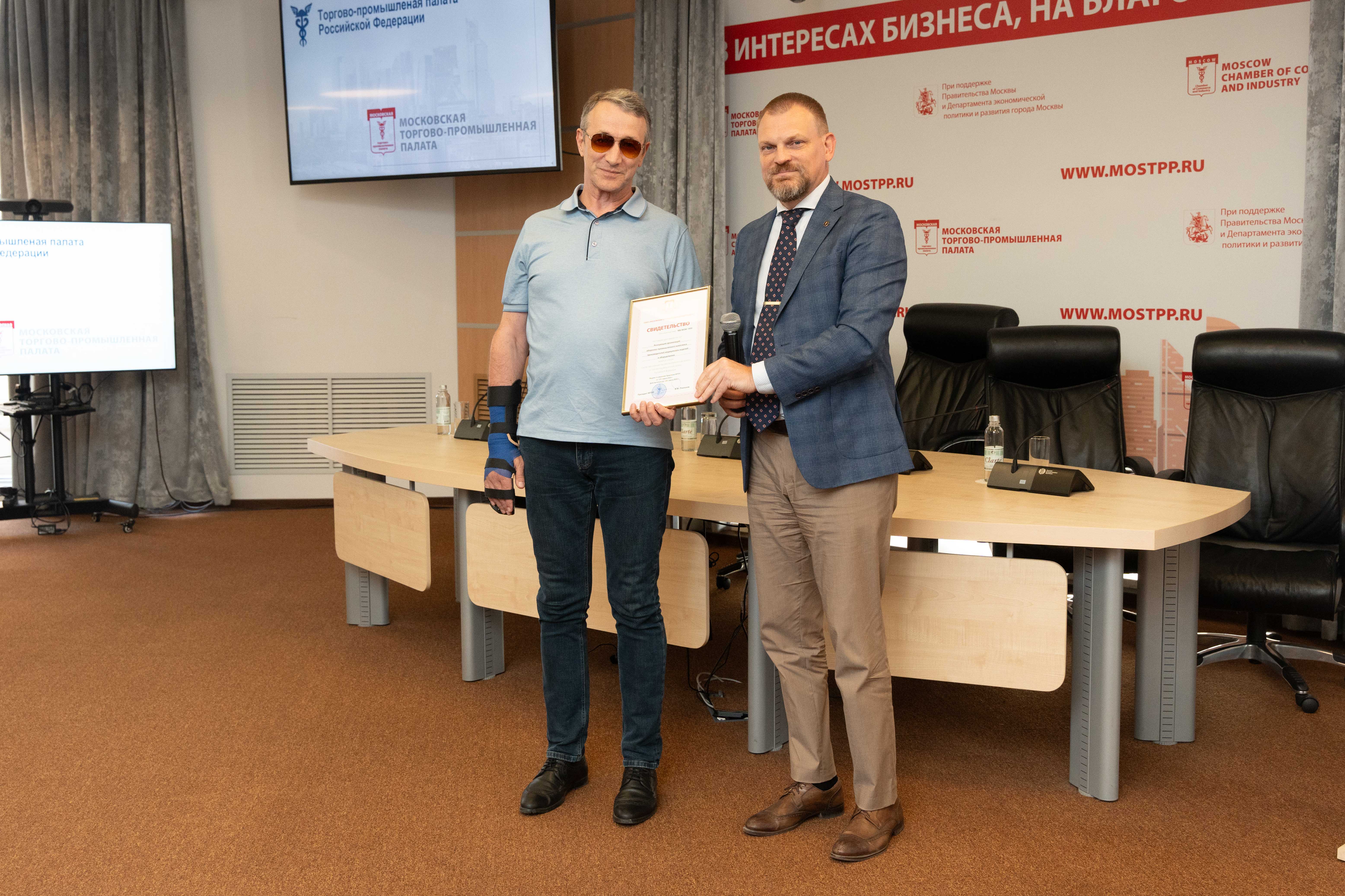 По окончании пленарной сессии состоялось вручение компаниям сертификатов о членстве в ТПП РФ и Московской торгово-промышленной палате.