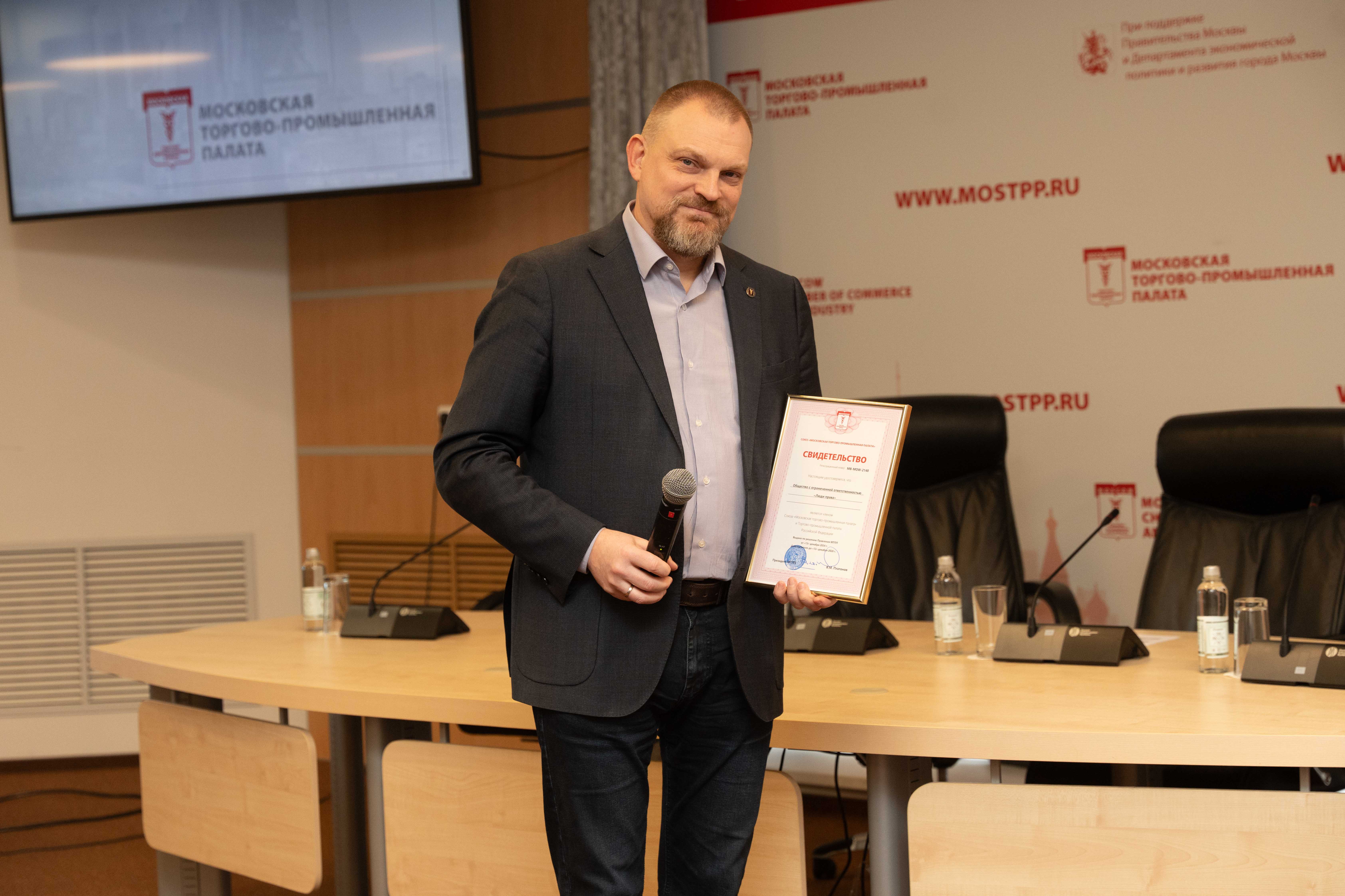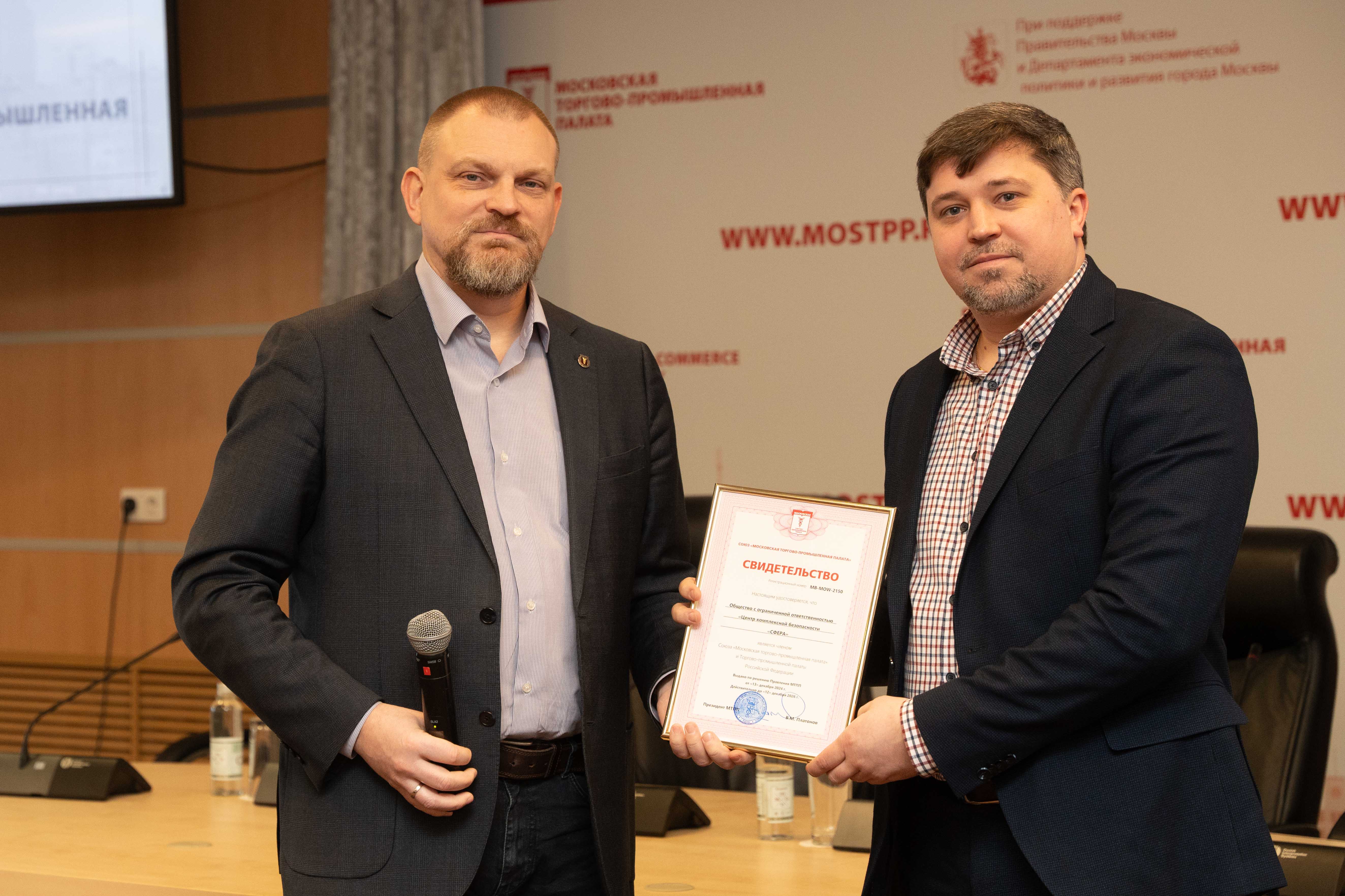 После завершения деловой части в торжественной обстановке в конференц-зале МТПП около 60 московских компаний получили свидетельства о членстве в МТПП и ТПП РФ.