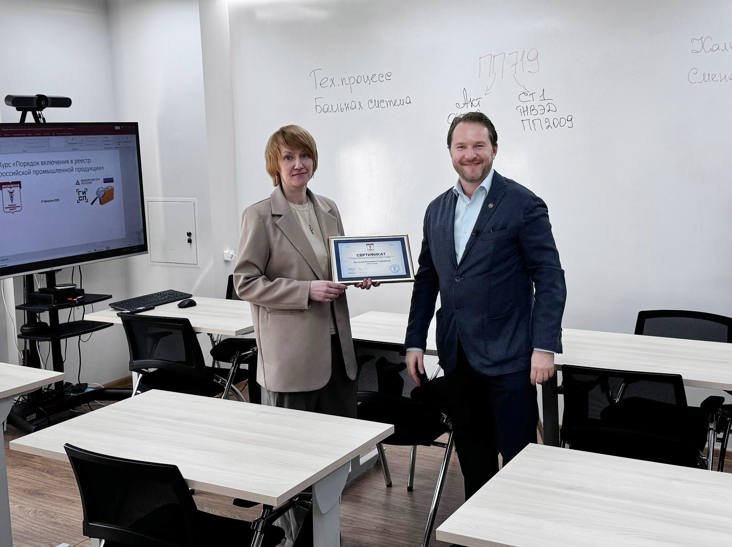 Слушатели первого потока специального учебного курса Московской ТПП «Правовые и технические аспекты включения в реестр по Постановлению Правительства РФ от 17.07.2015 № 719» получили сертификаты об успешном завершении учебы.