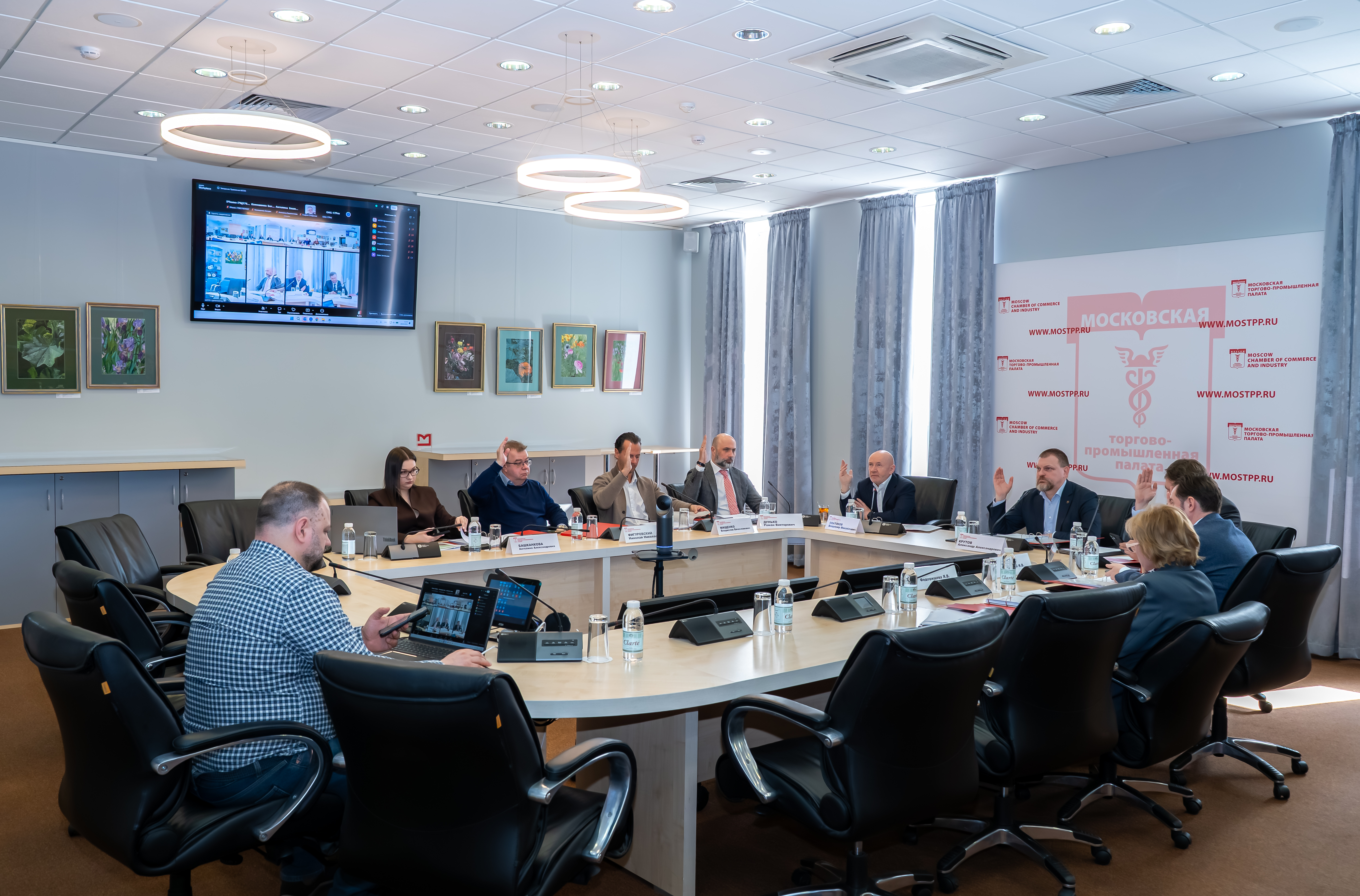 Далее члены Правления рассмотрели вопрос о внесении изменений в состав общественных структур МТПП. Так, были утверждены предложения о прекращении полномочий председателей четырёх комиссий по внешнеэкономическому сотрудничеству с зарубежными партнёрами в связи с отсутствием конструктивной связи, коммуникаций с МТПП и взаимодействия по страновым направлениям: В.М. Угарова (Новая Зеландия), Н. Милиویهвича (Сербия), Т.Р. Мансурова (США) и Б.А. Полторакевича (страны Балтии). Правление приняло решение о ликвидации Гильдии дизайна и народно-художественных промыслов при МТПП в связи с неактуальностью дальнейшего существования данной общественной структуры отдельно от комплексного рассмотрения вопросов развития экономики креативных индустрий на территории города Москвы; членам гильдии предложено присоединиться к Гильдии креативных индустрий при МТПП.