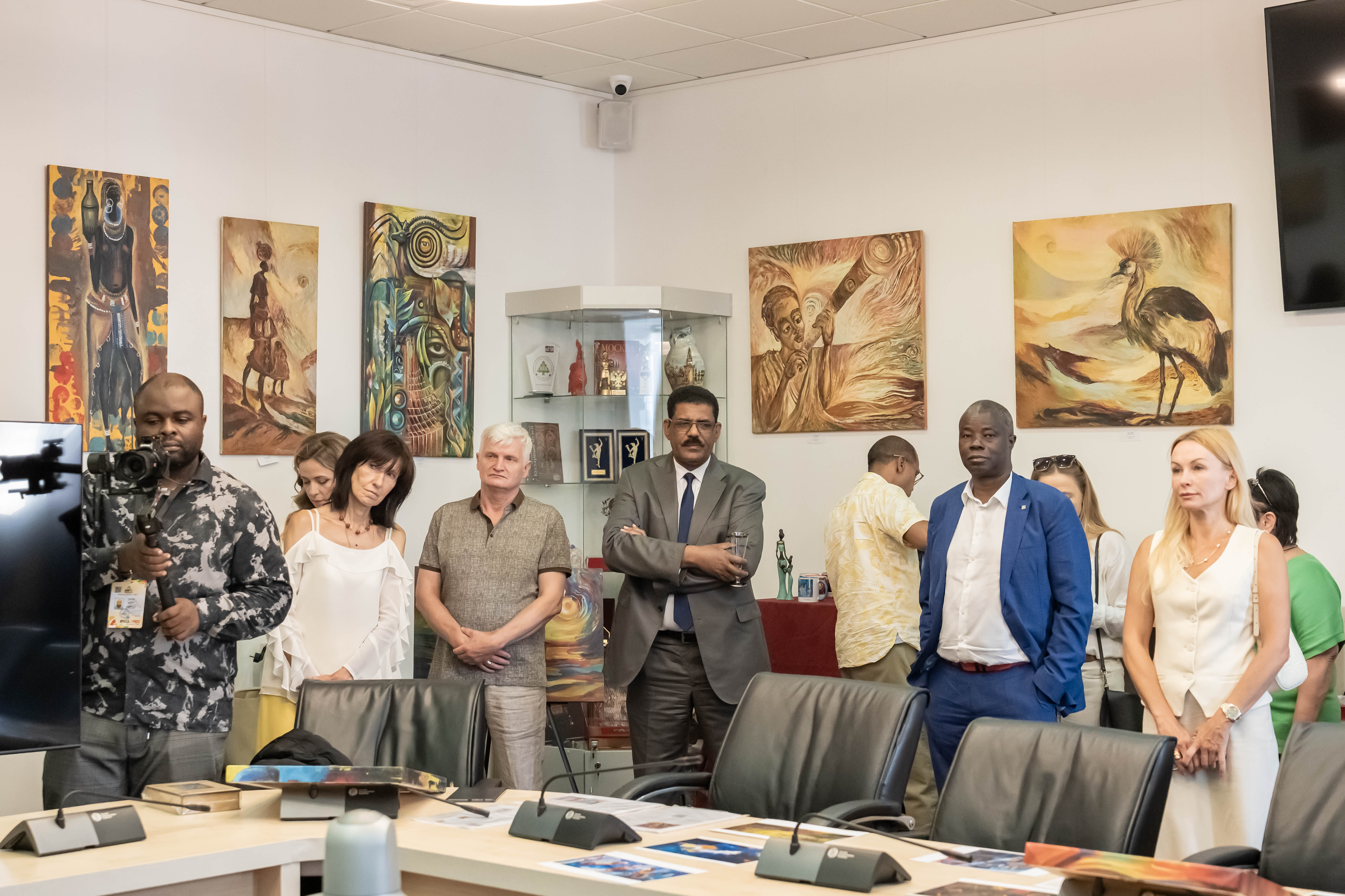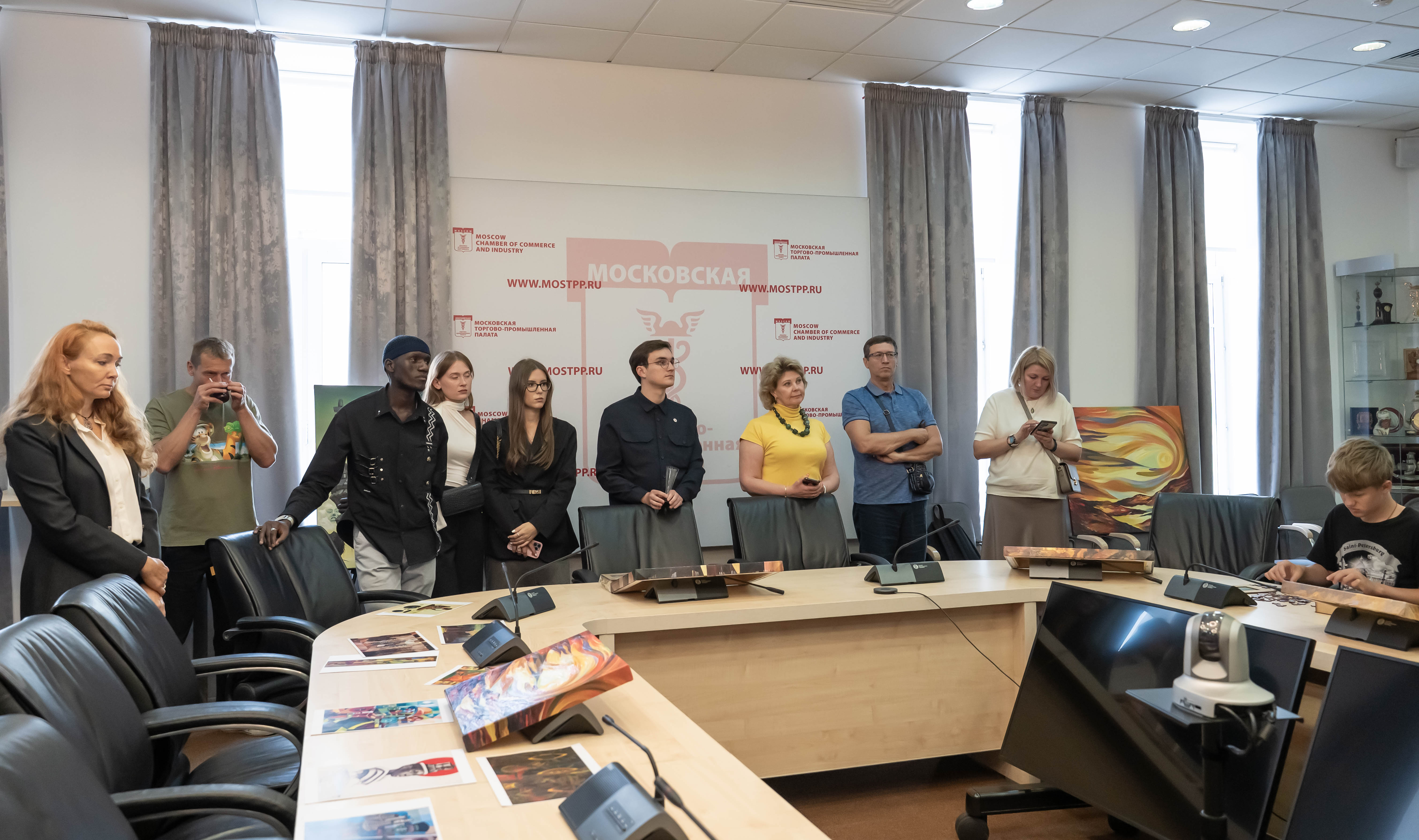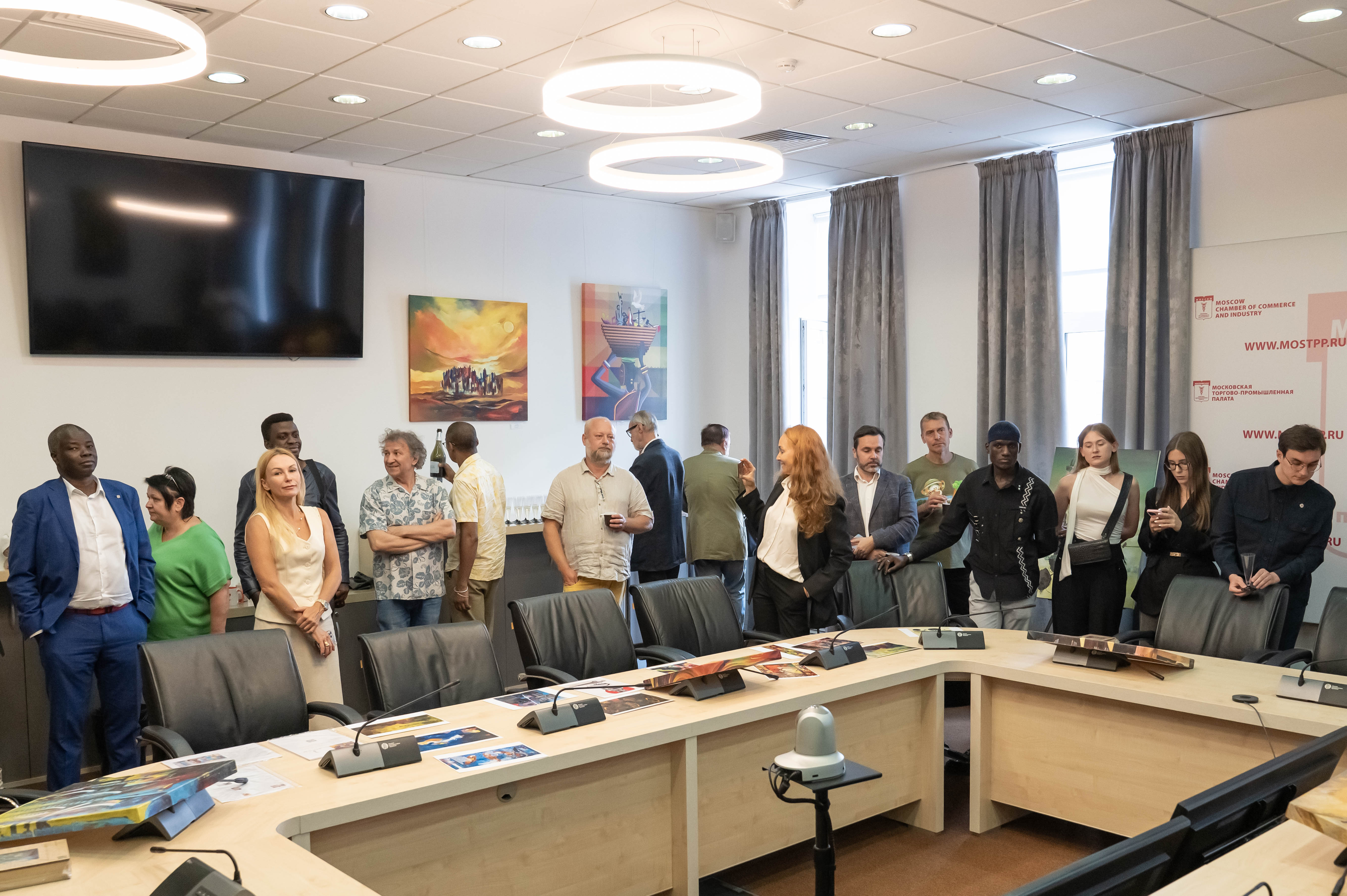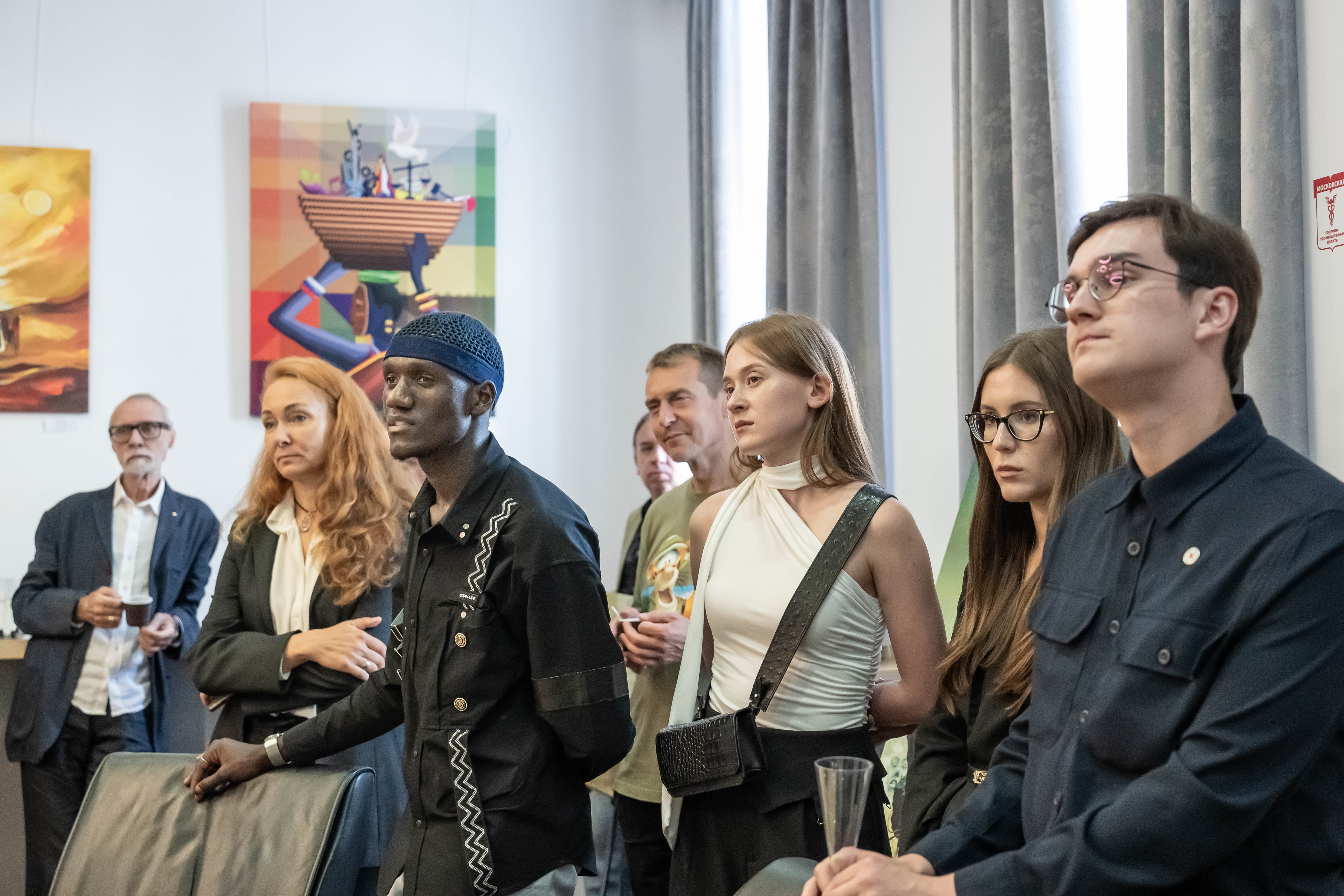 Посетители МТПП могут познакомиться с работами угандийских художников, в творчестве которых африканские традиции сочетаются с академическими приемами российской художественной школы. Особое внимание привлекают произведения Пола Акики, который дважды приезжал в Москву, мечтая увидеть оригиналы работ Василия Кандинского. В 2024 году его работа «Лица надежды» заняла второе место в конкурсе «Искусство без границ» Академии Штиглица.