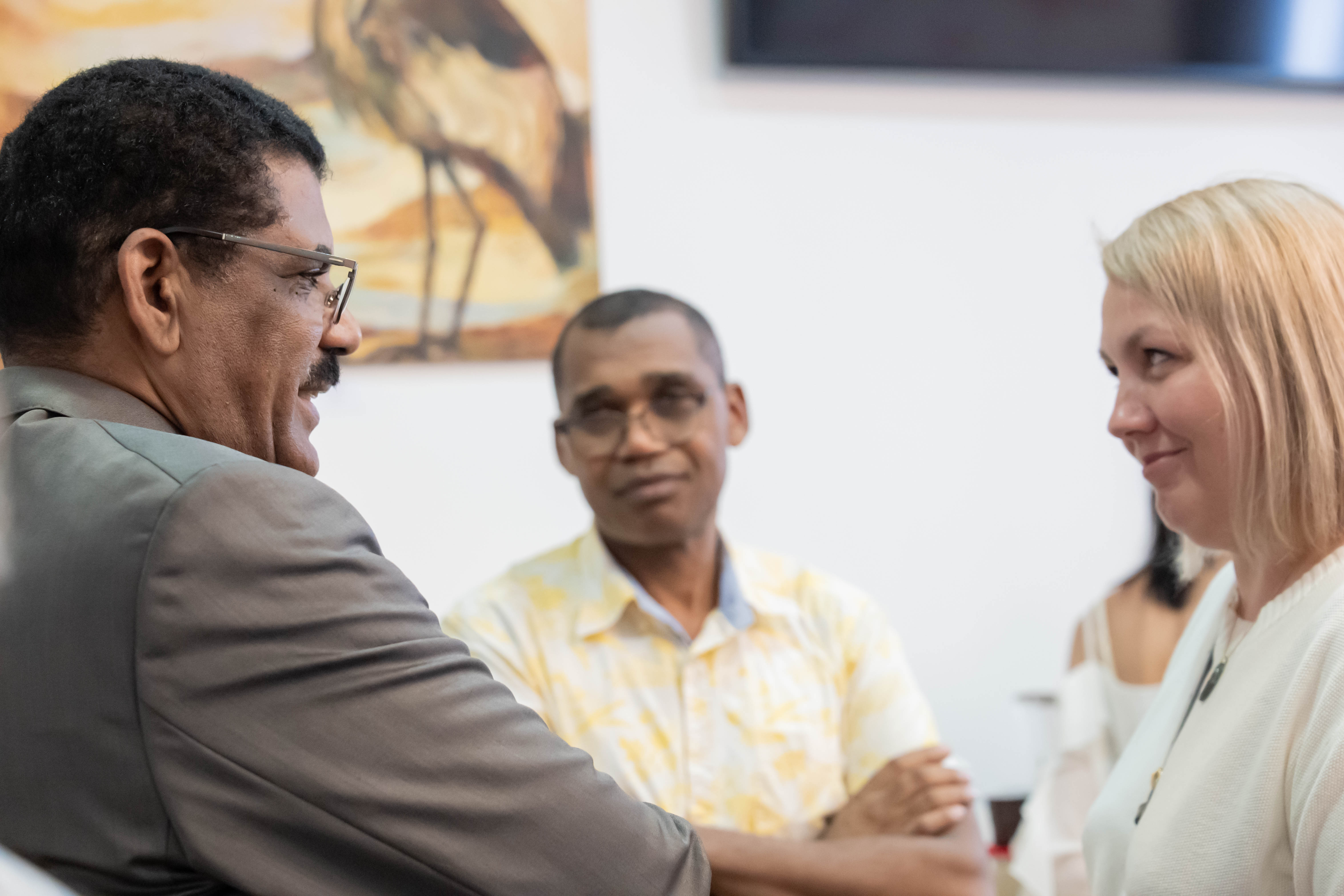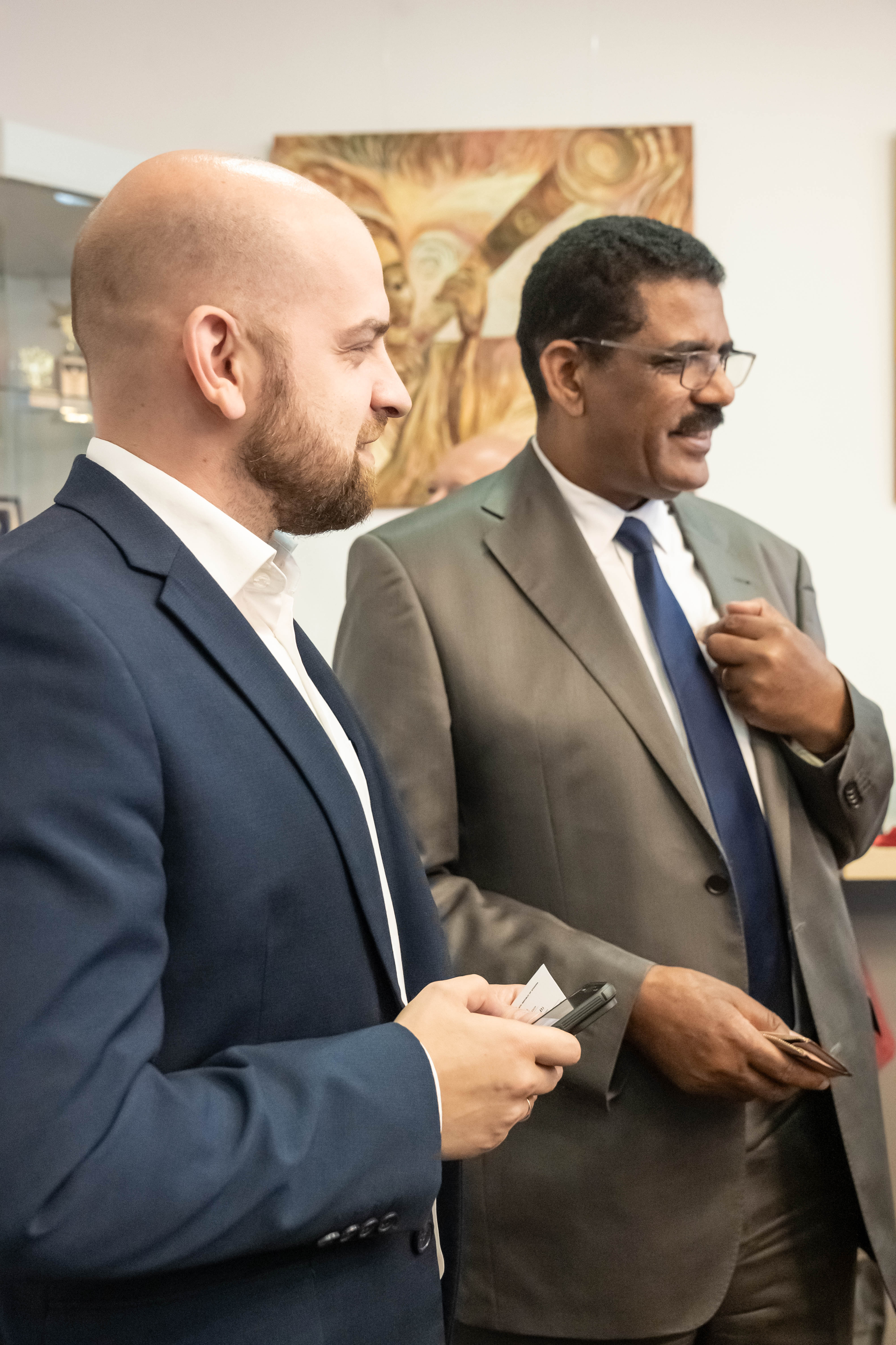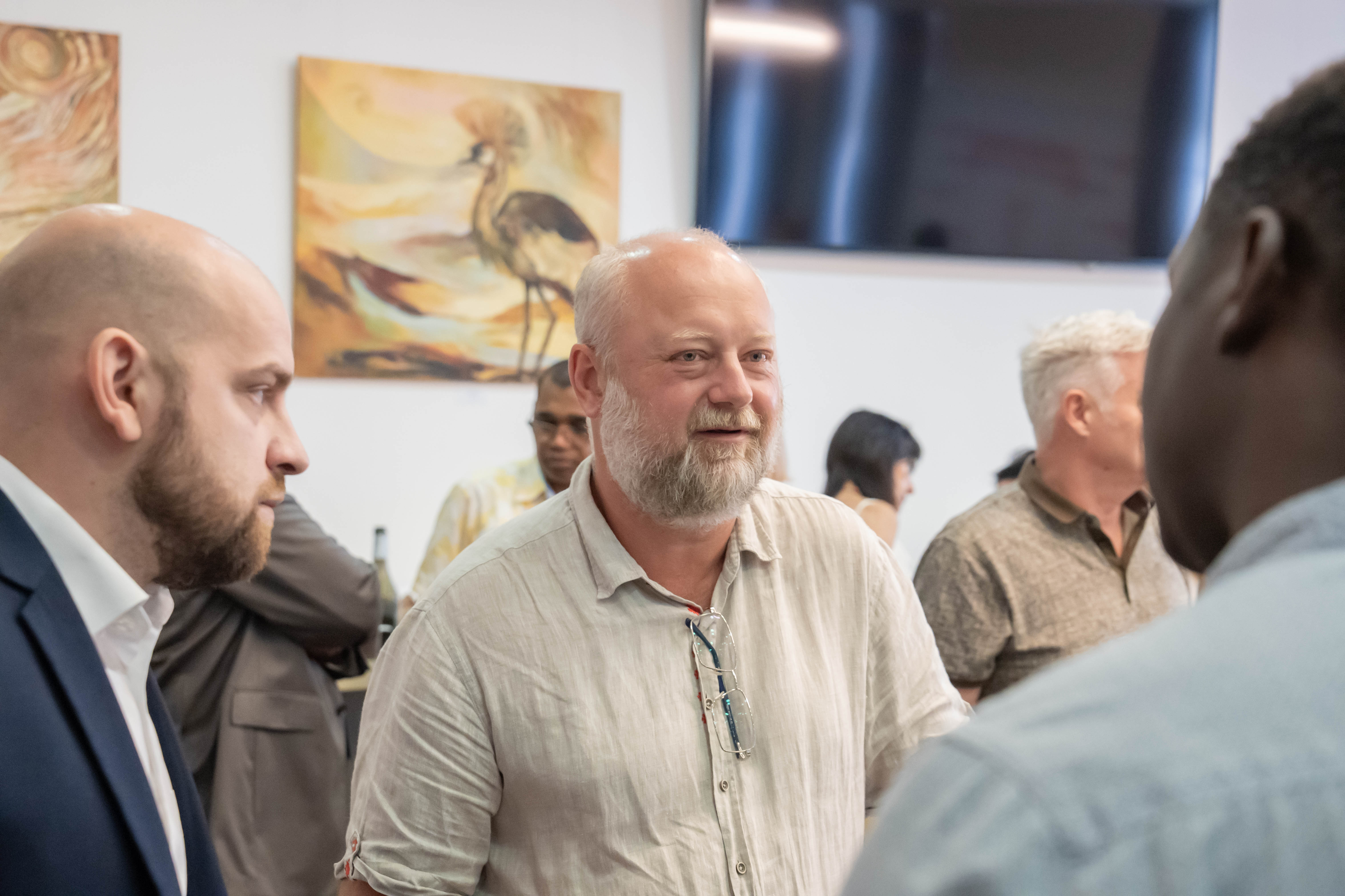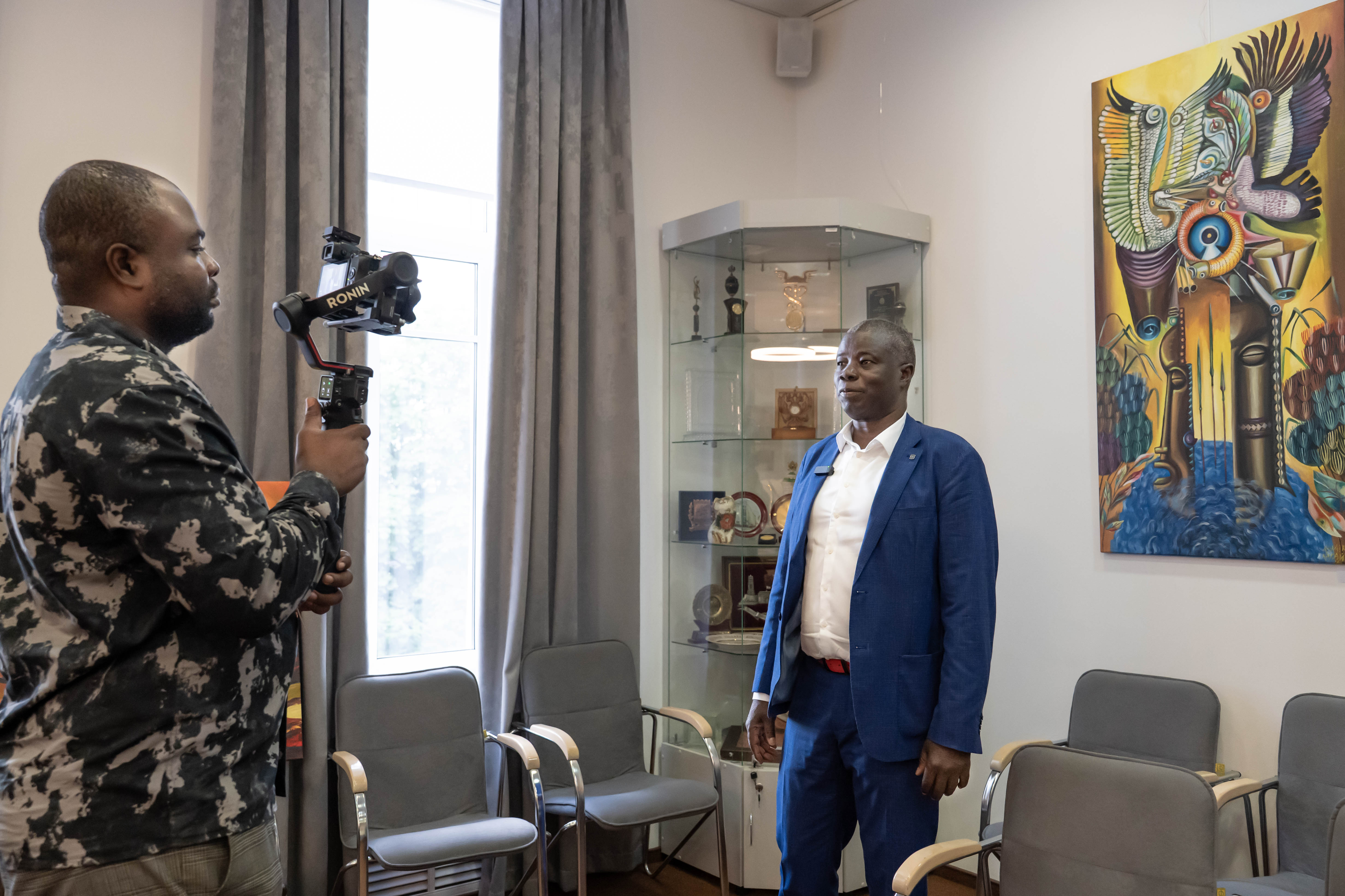 Посетители МТПП могут познакомиться с работами угандийских художников, в творчестве которых африканские традиции сочетаются с академическими приемами российской художественной школы. Особое внимание привлекают произведения Пола Акики, который дважды приезжал в Москву, мечтая увидеть оригиналы работ Василия Кандинского. В 2024 году его работа «Лица надежды» заняла второе место в конкурсе «Искусство без границ» Академии Штиглица.