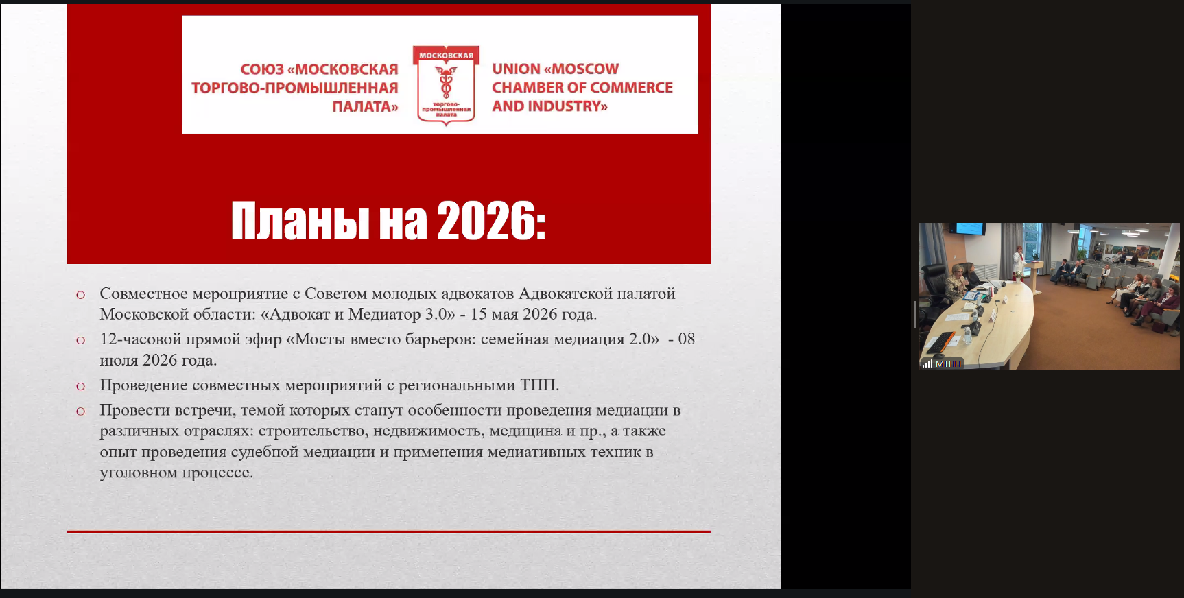 В завершении мероприятия члены Комитета МТПП по развитию медиации коротко подвели основные итоги двухлетней работы и рассказали о ближайших планах.