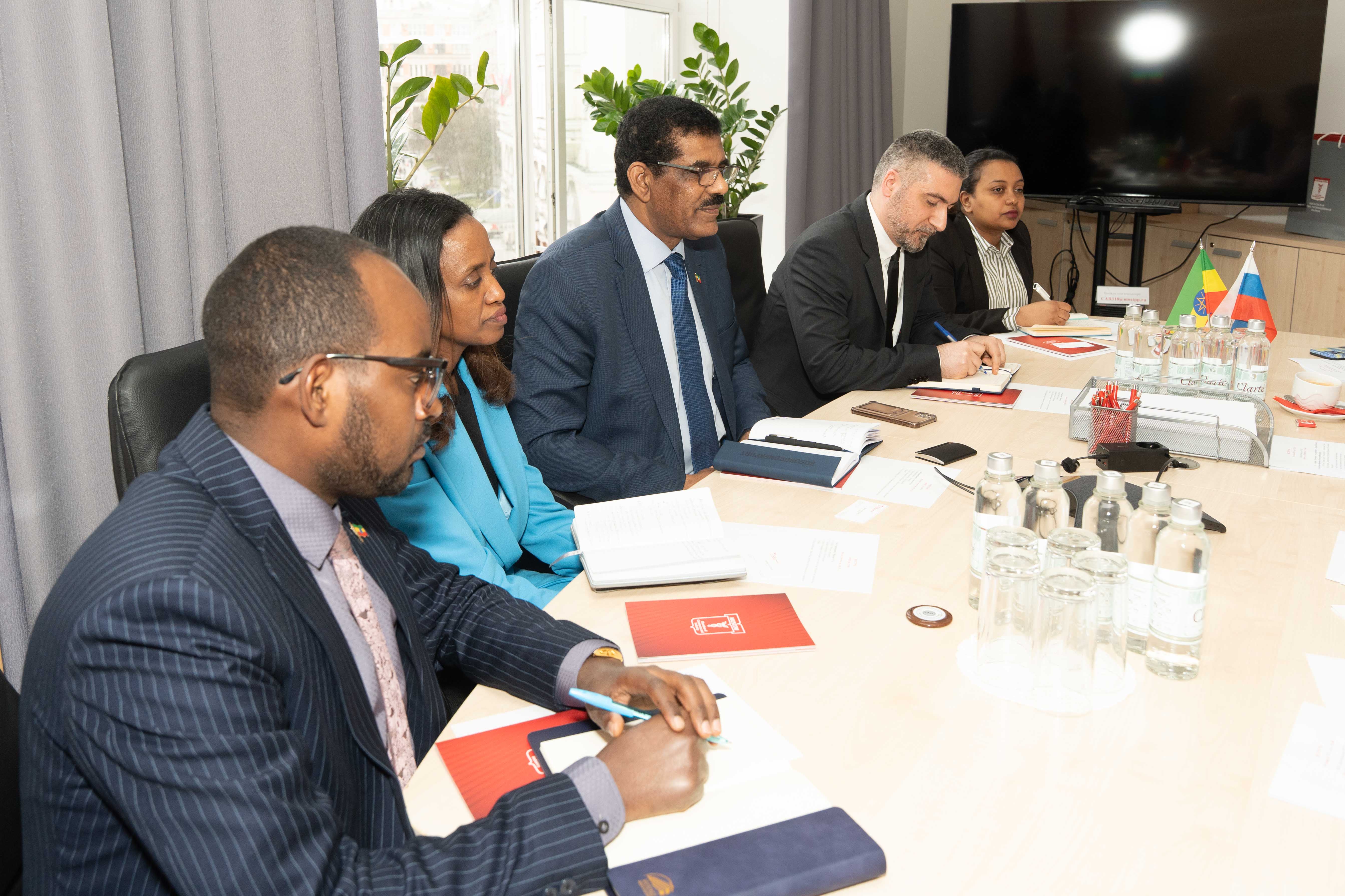 В ответ Чрезвычайный и полномочный Посол Генет Тешоме Жирру отметил, что сейчас «идеальное время для развития отношений» между РФ и ФДРЭ. Он рассказал также, что Эфиопия – вторая по численности населения страна в Африке с большим количеством молодого населения. Это открывает широкие возможности для представителей российского бизнеса, для возможных инвестиций в различные сферы: туризм, промышленность, сельское хозяйство. «Все отрасли эфиопской экономики открыты и политика правительства нацелена на привлечение иностранных инвесторов, в том числе из России», - подчеркнул Генет Тешоме Жирру.