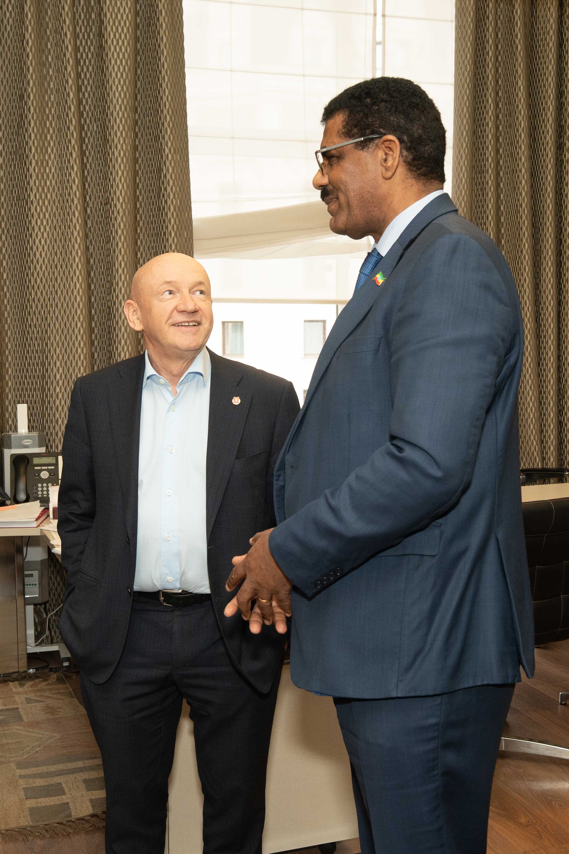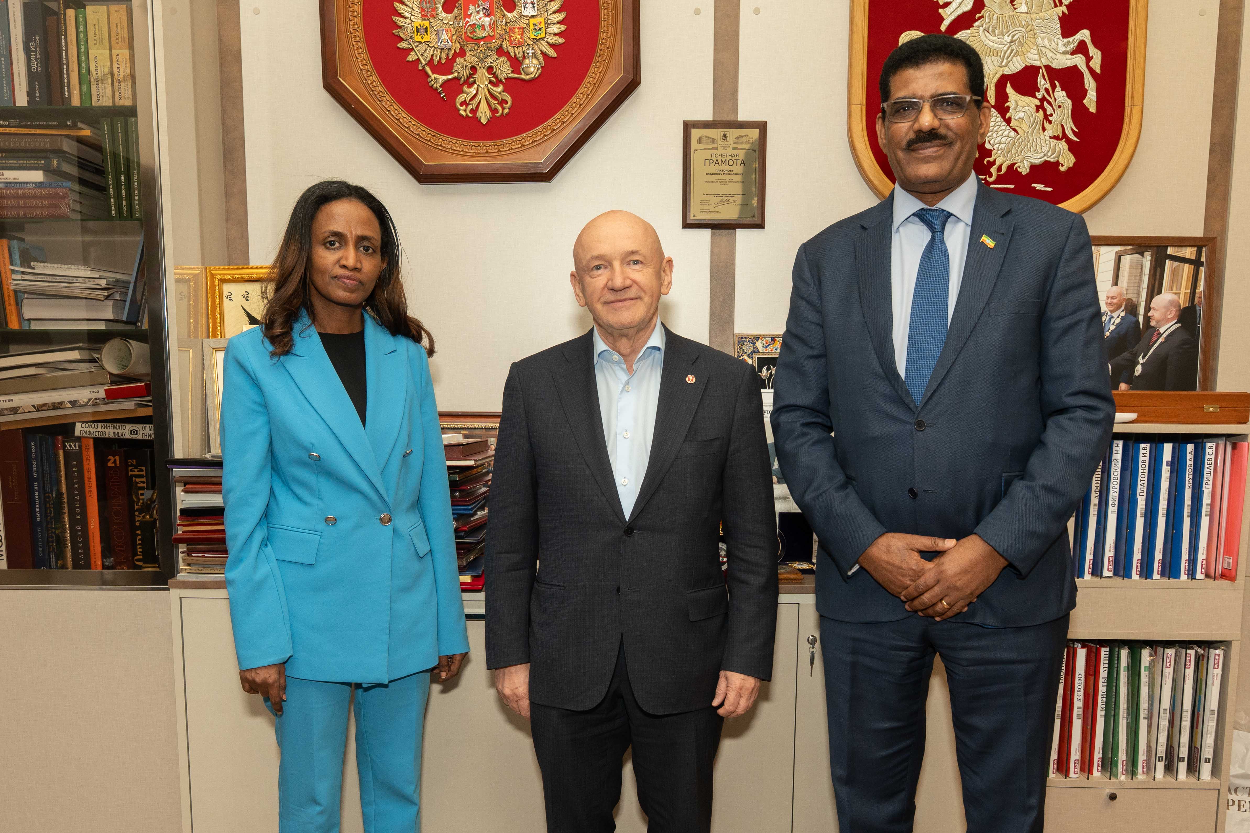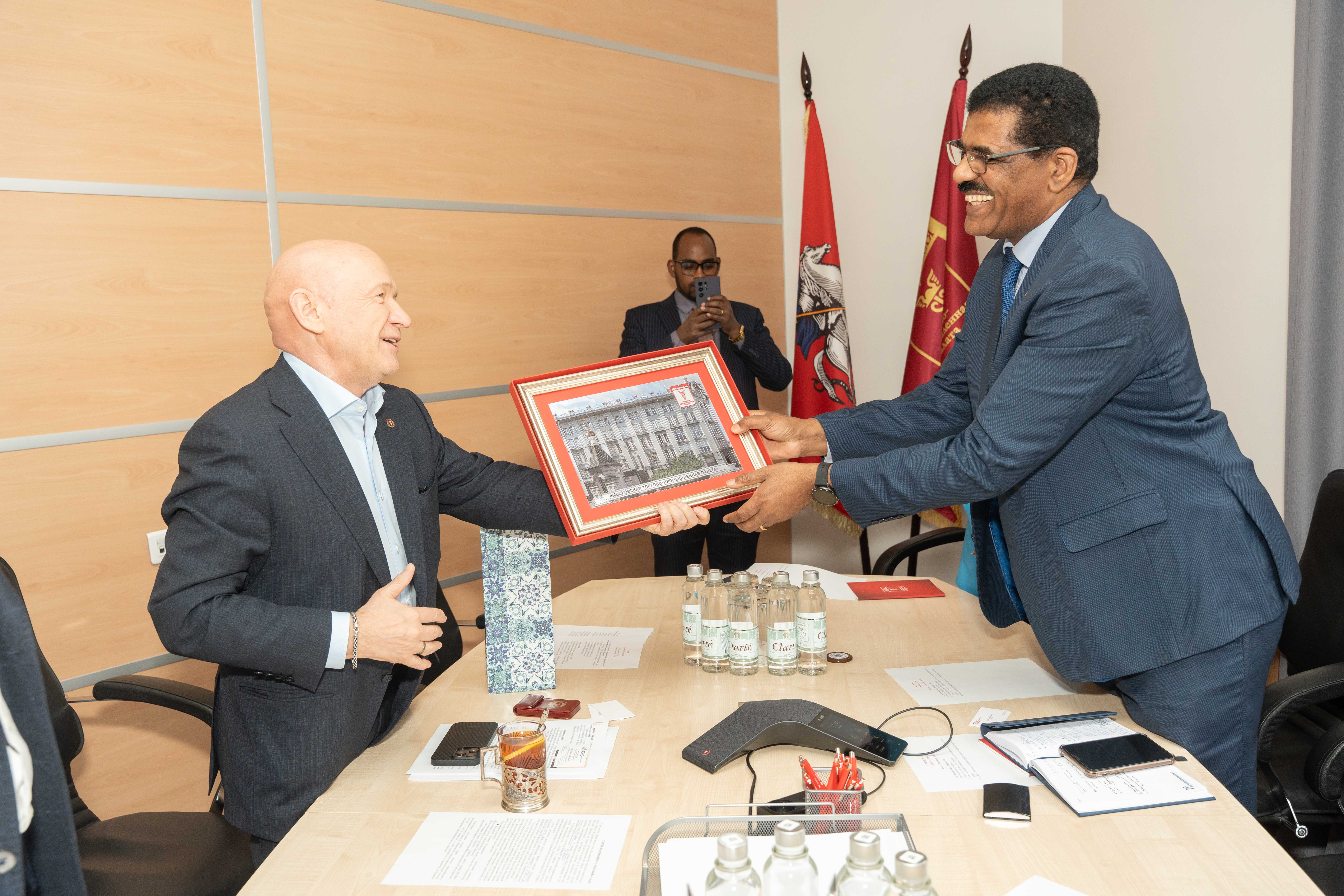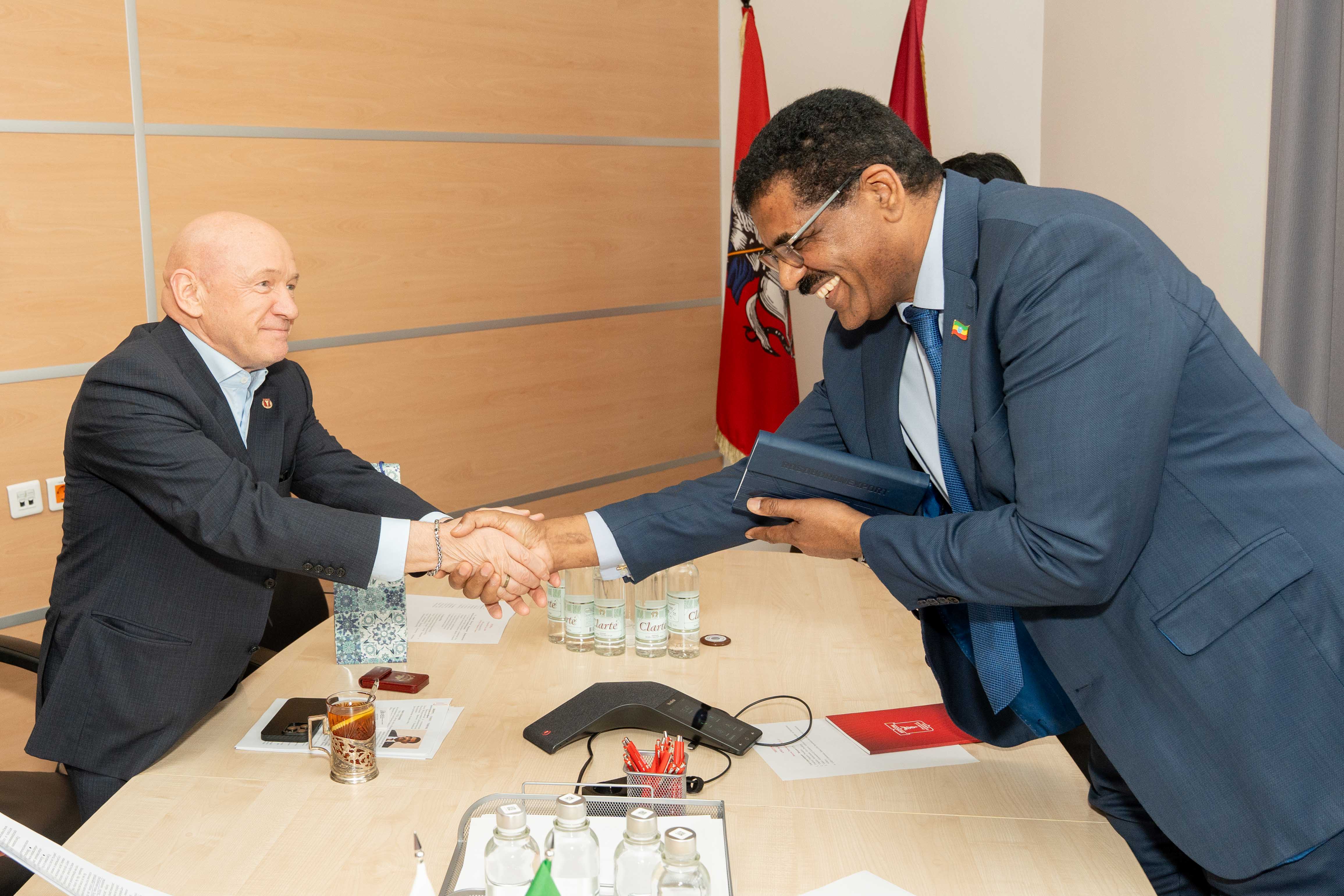 4 апреля состоялась встреча президента МТПП Владимира Платонова с Чрезвычайным и полномочным Послом Федеративной Демократической Республики Эфиопии в Российской Федерации Жирру Генетом Тешоме.