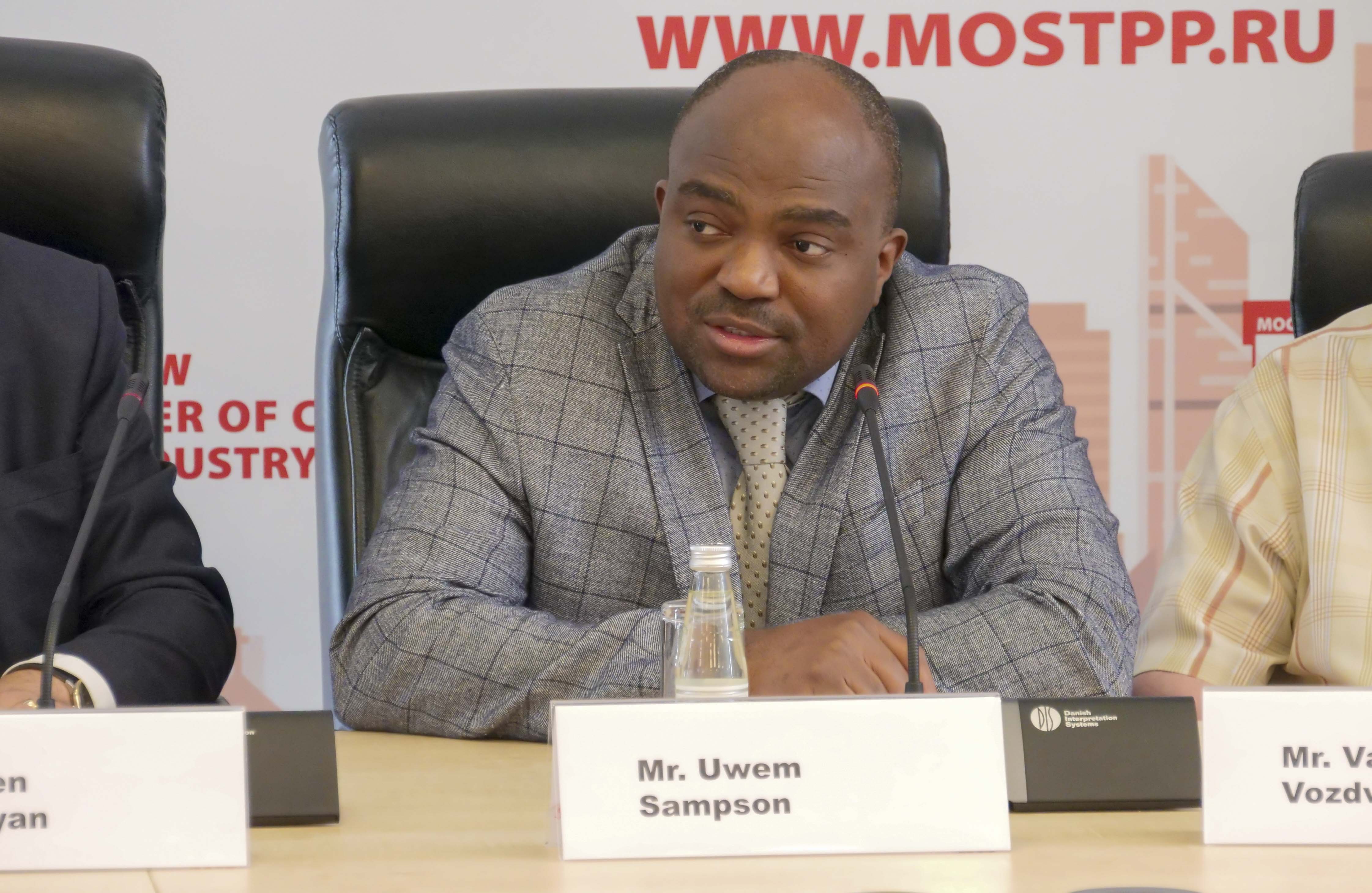 Сомодератор мероприятия, президент NIDO Russia (Региональная общественная организация по содействию развитию культурно-экономических и духовных связей выходцев из Нигерии - НИДО) Увем Сампсон напомнил, что конференция призвана укрепить сотрудничество между российскими и нигерийскими компаниями, и «определить точки контакта».