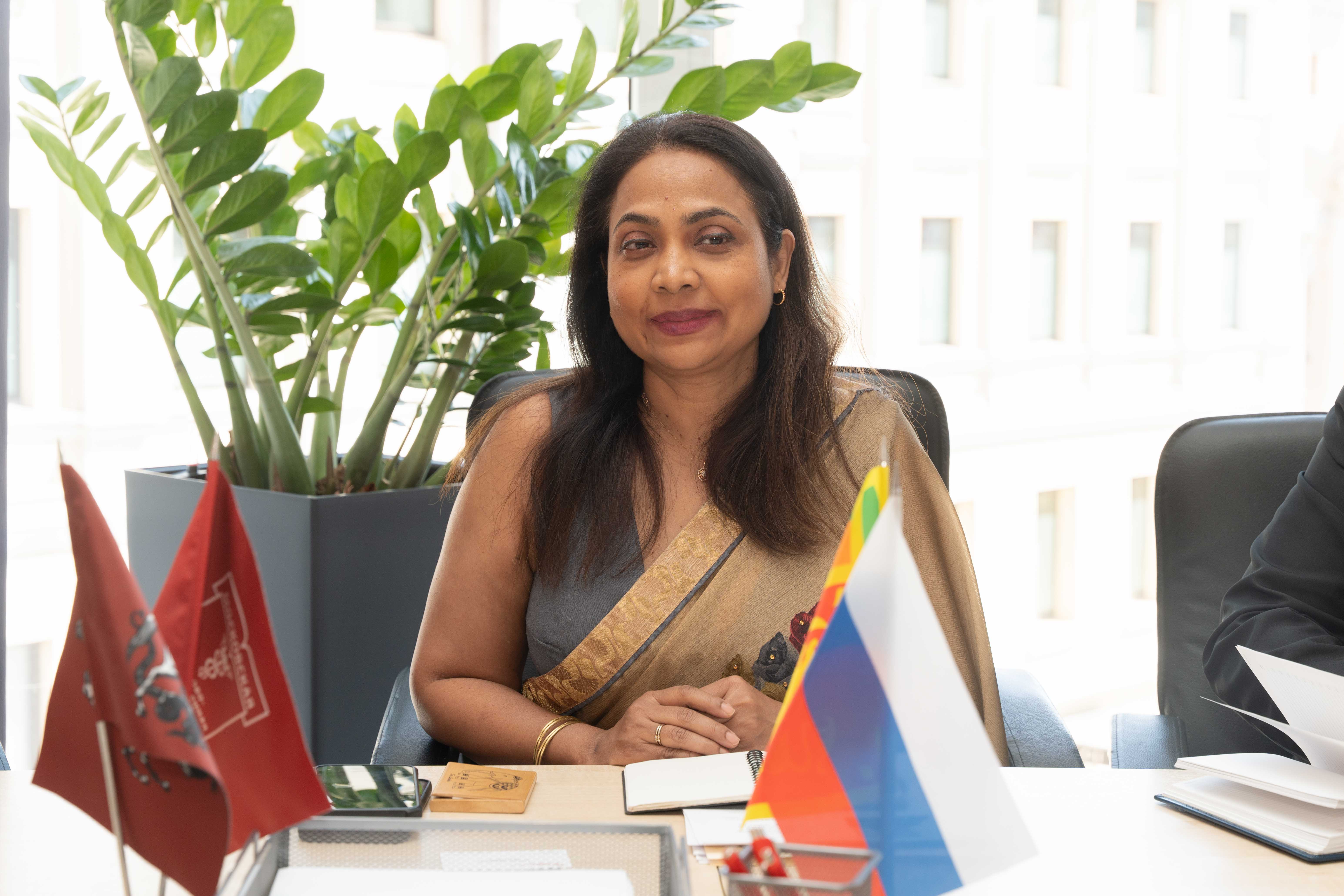 Госпожа Шобини Гунасекера, Чрезвычайный и Полномочный посол Демократической Социалистической Республики Шри-Ланка, прибыла Москву несколько месяцев назад. Владимир Платонов поздравил её со вступлением в должность. «Московская торгово-промышленная палата следует сразу за Министерством иностранных дел, где часто бывает Посол. И в этом есть объективная необходимость, так как МТПП входит в мировую систему ТПП и это открывает для нас весь мир. А Посол – это человек, которому государство делегирует представлять интересы и организовывать работу. Мы открыты и по первому обращению со стороны Посольства организовываем необходимые встречи. А главное – работу», - сказал глава МТПП.