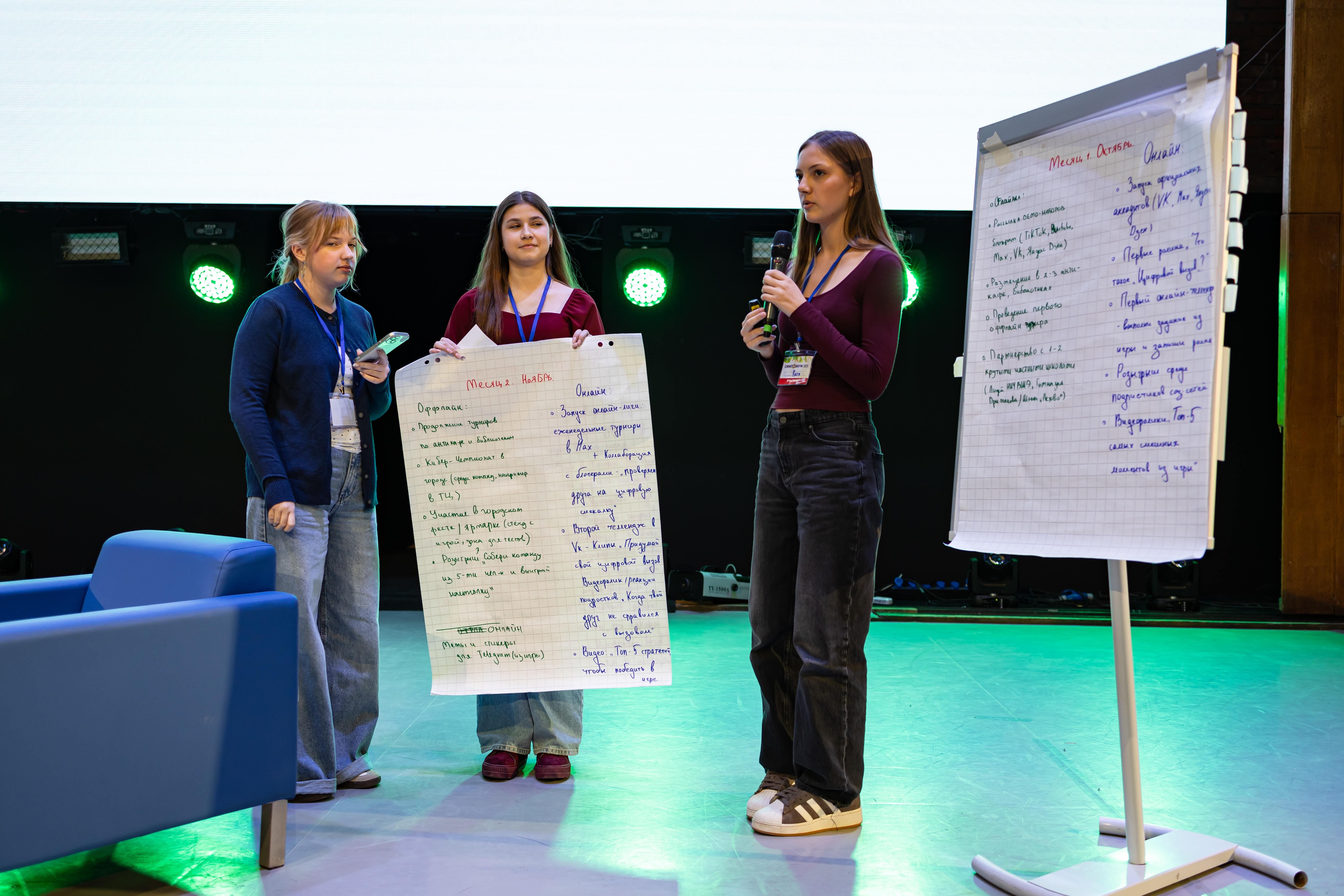 Следующим мероприятием программы была публичная защита бизнес-проектов, разработанных на мастер-классах. Команда учащихся школы № 1194 и ООО «Смарт-Системз» (наставник – Анастасия Левченко) представила проект «Цифровизация предприятий». Команда школы № 2045 и ООО «Склад ума» (наставник – Артем Старовойтов) – проект «Бизнес-лаборатория: как покорить рынок STEM-игрушек?». Команда школы № 842 и ООО «РЭК» (наставник – Михаил Шишкин) защитили проект «Экспериментальный пластик для 3Д принтера», студенты Академии бизнеса и инновационных технологий (АНО ДПО АБИТ) под кураторством Павла Сафронова – проект «Нейросеть в стартапе и ИИ».