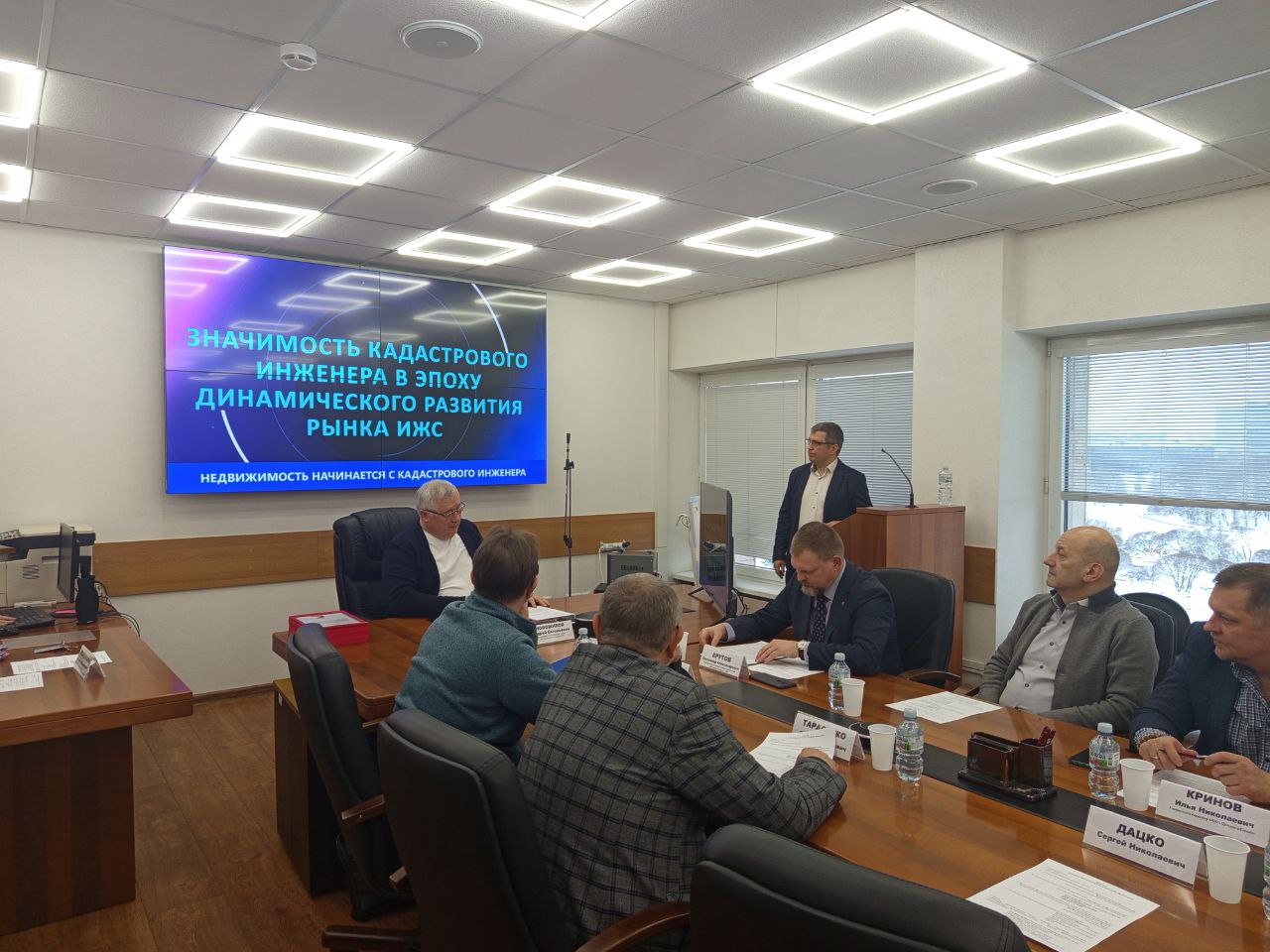 В начале встречи были презентованы две компании, недавно вступившие в Палату. Президент ООО «ГРУППА КОМПАНИЙ МОИ УСЛУГИ» Денис Скарков рассказал о работе кадастрового инженера и деятельности компании в сфере земельных, кадастровых и градостроительных отношений, а также об участии в профильных выставках и конгрессах. Генеральный директор ООО «ЛАБРОМЕД» Владислав Шиленков представил предприятие как одного из ключевых игроков на рынке специализированной медицинской и лабораторной мебели, отметив широкую географию поставок – от Владивостока до Калининграда – и наличие сертификата качества ISO 9001.