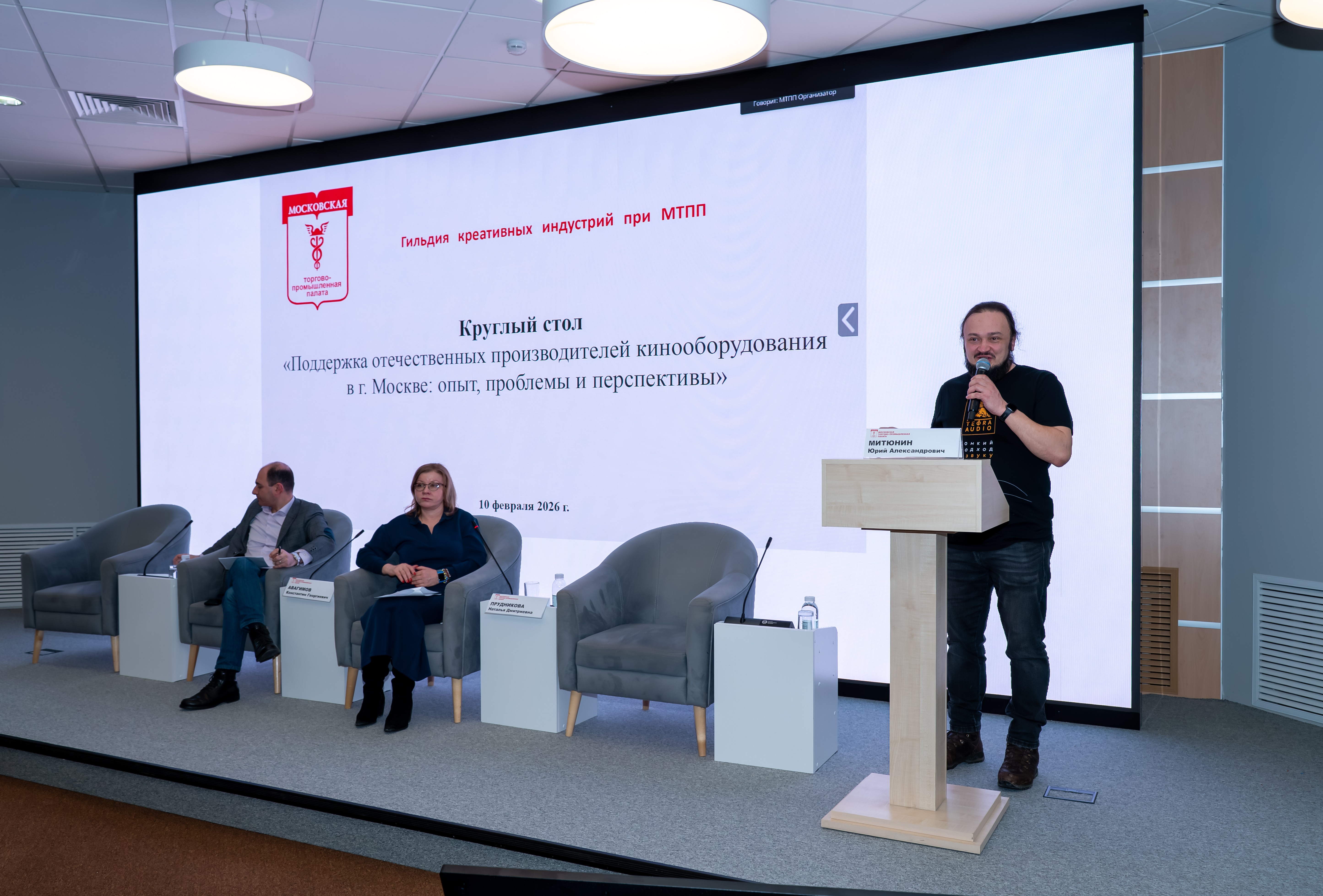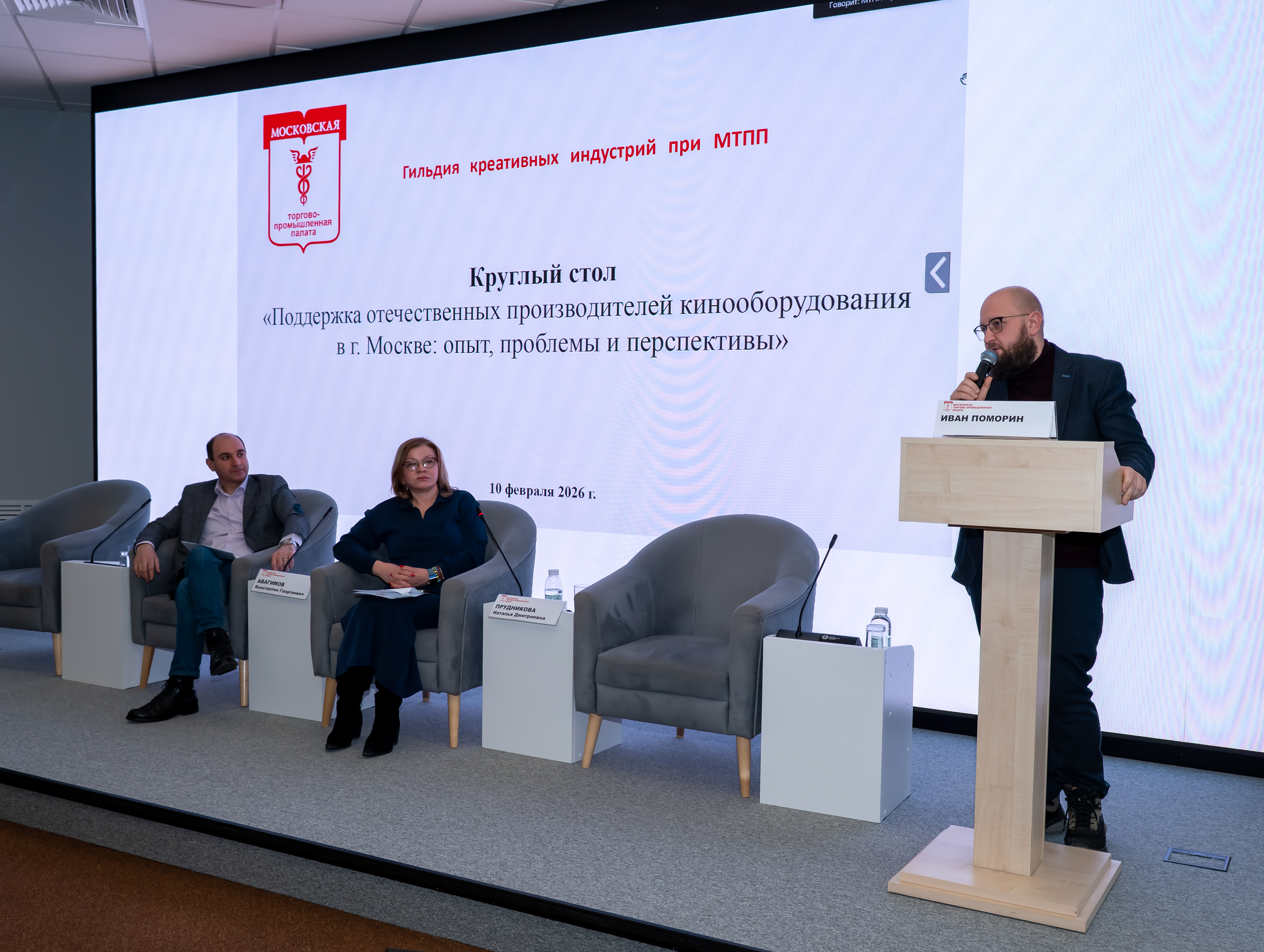 10 февраля в Московской торгово-промышленной палате прошёл круглый стол на тему «Поддержка отечественных производителей кинооборудования в Москве: опыт, проблемы и перспективы». Организатором мероприятия выступила Гильдия креативных индустрий при МТПП.