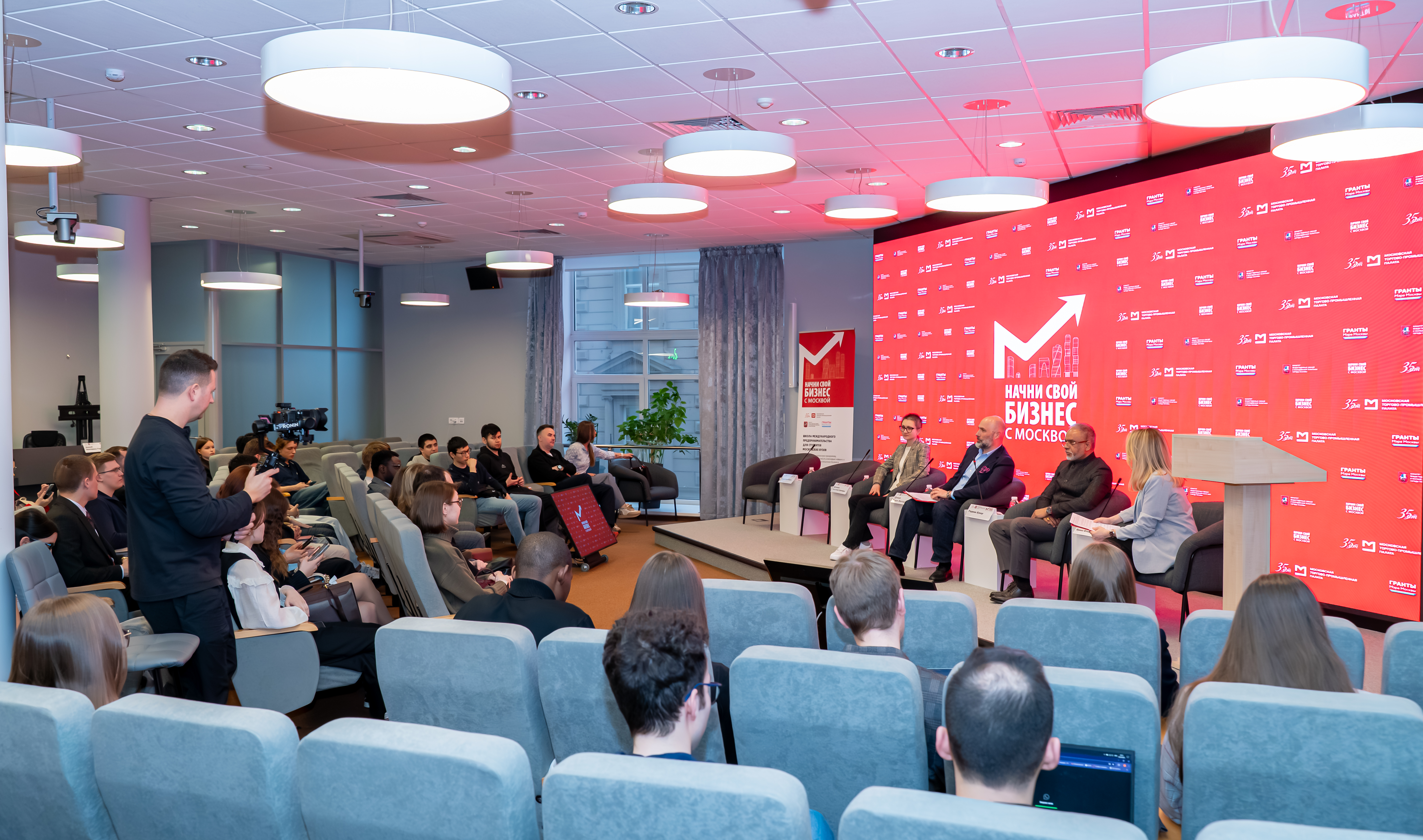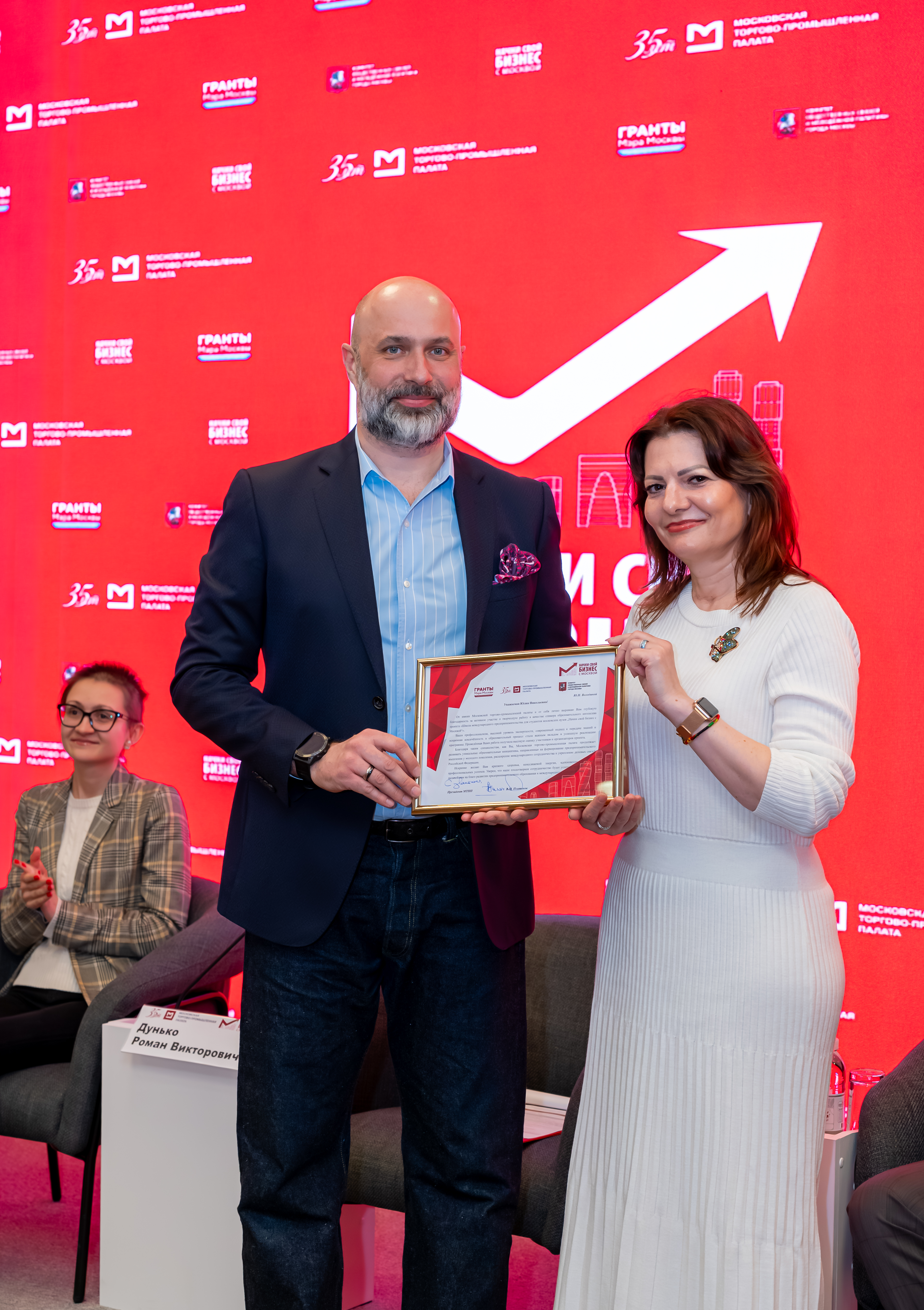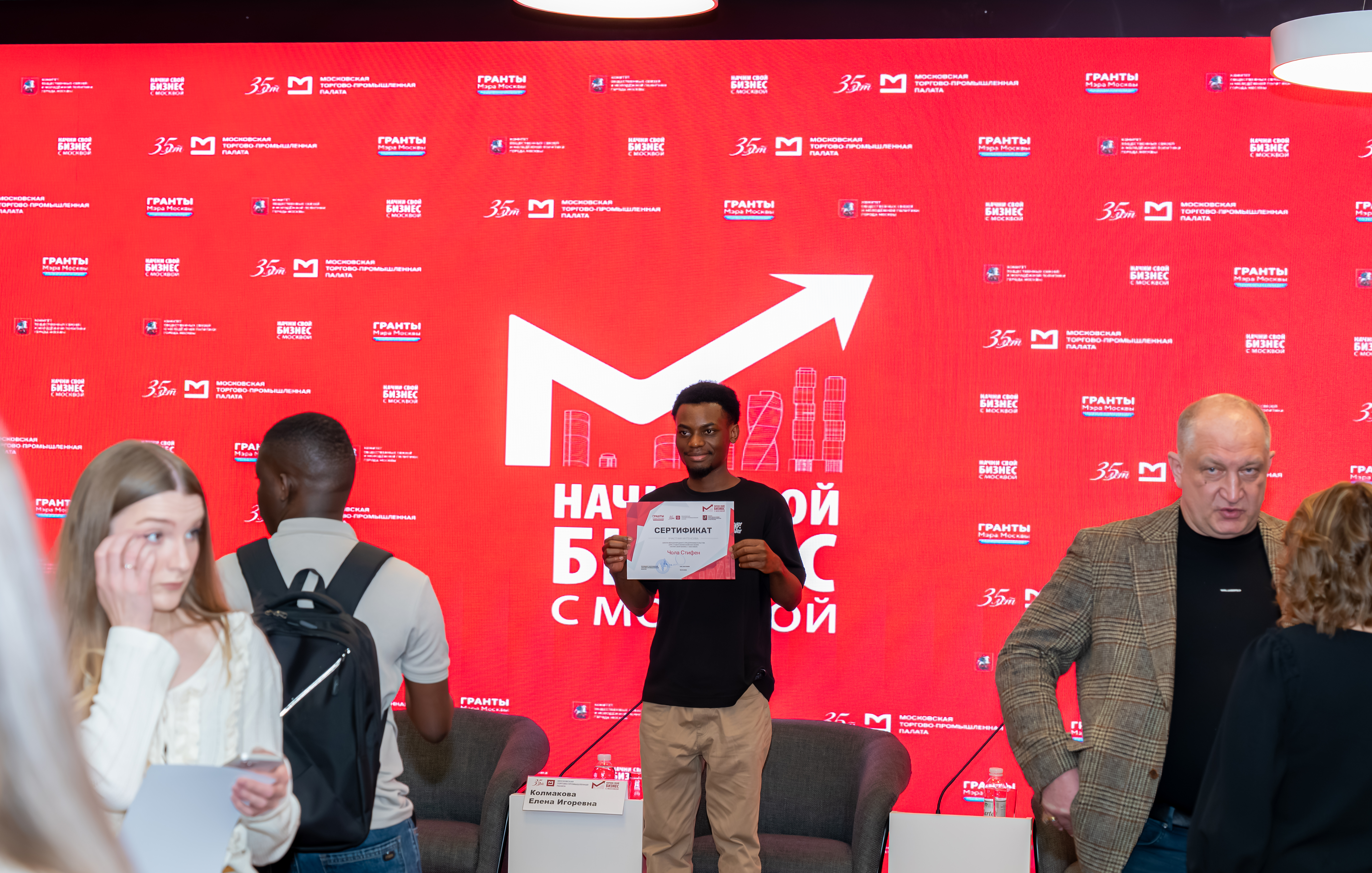 В приветственном слове вице-президент МТПП по реализации проектов и коммерческому развитию Роман Дунько отметил значимость проекта для формирования международного сообщества молодых предпринимателей в Москве и поблагодарил партнеров и экспертов за вклад в подготовку нового поколения бизнес-лидеров. «Поздравляю вас с завершением первого этапа обучения: впереди акселерационный модуль, где у вас будет возможность объединиться в команды, доработать свои проекты и вывести их на новый уровень. В этом году мы делаем особый акцент на искусственном интеллекте и креативных индустриях, формируем под эти направления экспертный совет и развиваем сотрудничество с профильными факультетами МГУ, РУДН и нашими партнёрами. Уверен, что эти ресурсы помогут вам превратить учебные проекты в реальные предпринимательские истории успеха».