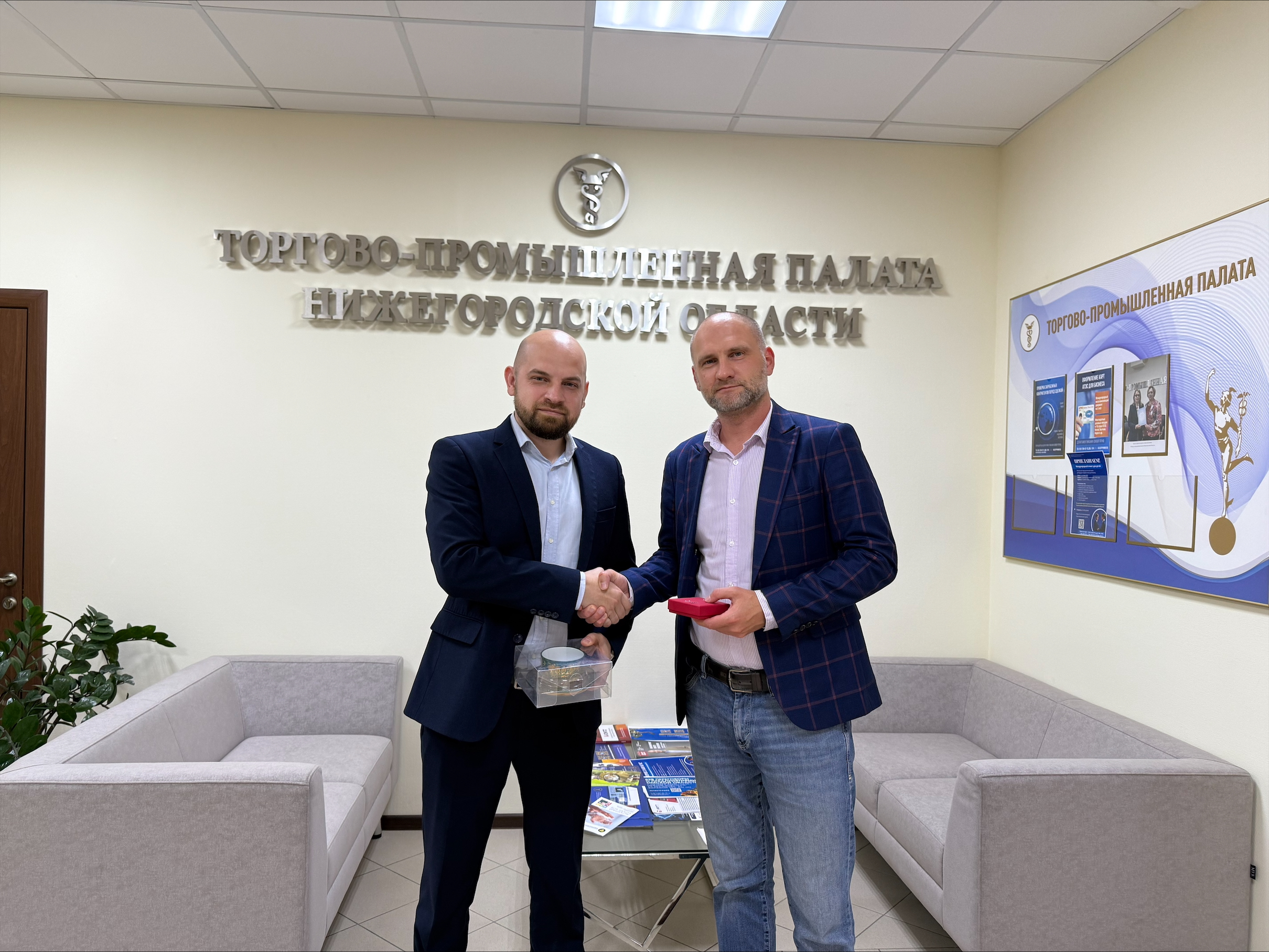 В рамках рабочей командировки 17 сентября состоялась встреча с и.о. генерального директора ТПП Нижегородской области Александром Пушкиным. Советник президента МТПП по международной деятельности Виктор Кустарёв обсудил с коллегой основные направления взаимодействия, в том числе в сфере продвижения промышленной продукции нижегородских производителей на российском и международных рынках, возможности интеграции региональных проектов и поддержки бизнеса в рамках экономического взаимодействия между Москвой и Нижегородской областью.