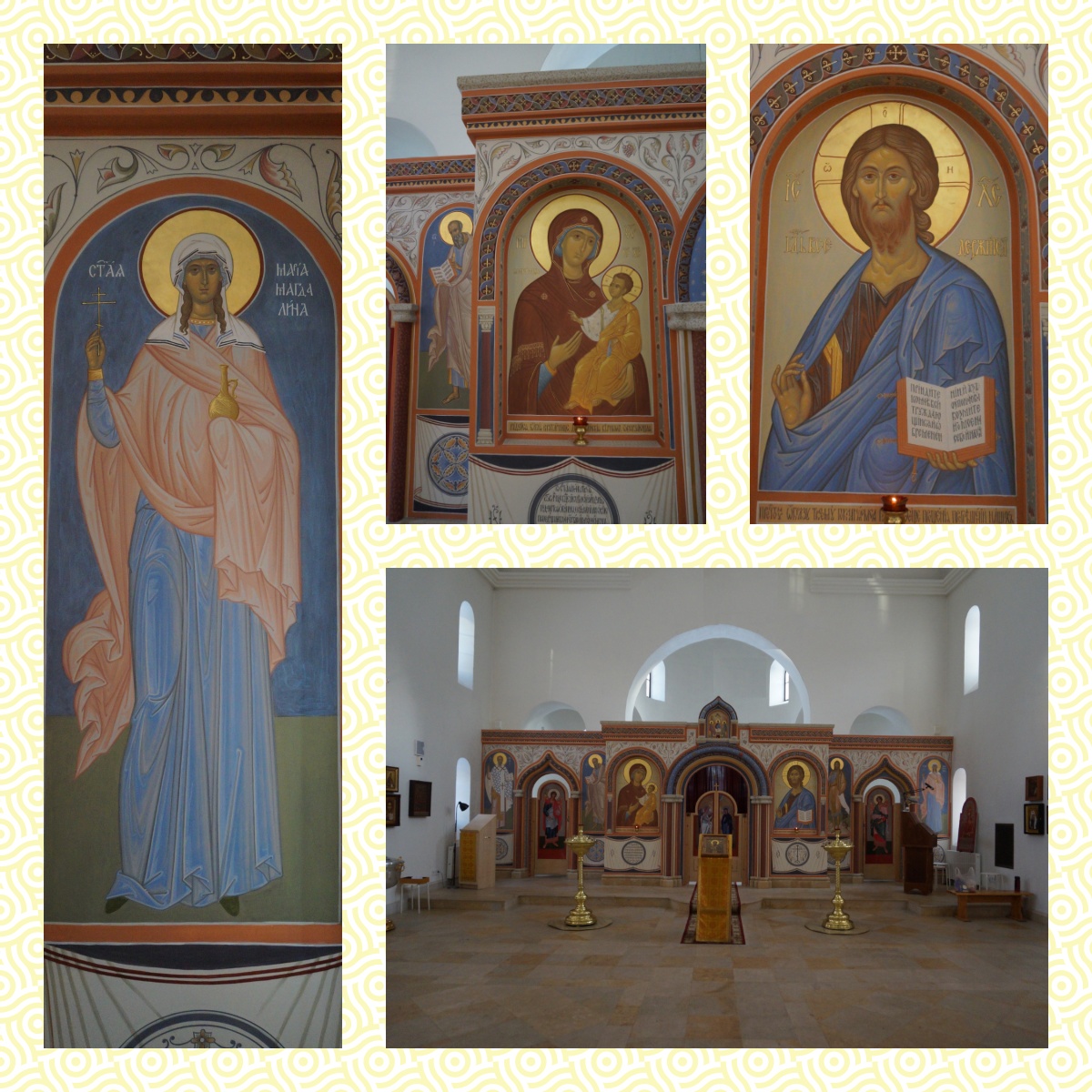 Храм имеет редкое посвящение – во имя святой равноапостольной Марии Магдалины, ученицы Христа. По Преданию, обычай обмениваться на Пасху красными яйцами связан именно с ней. В нашем храме есть икона с частицей мощей Марии Магдалины и других Жен-Мироносиц.